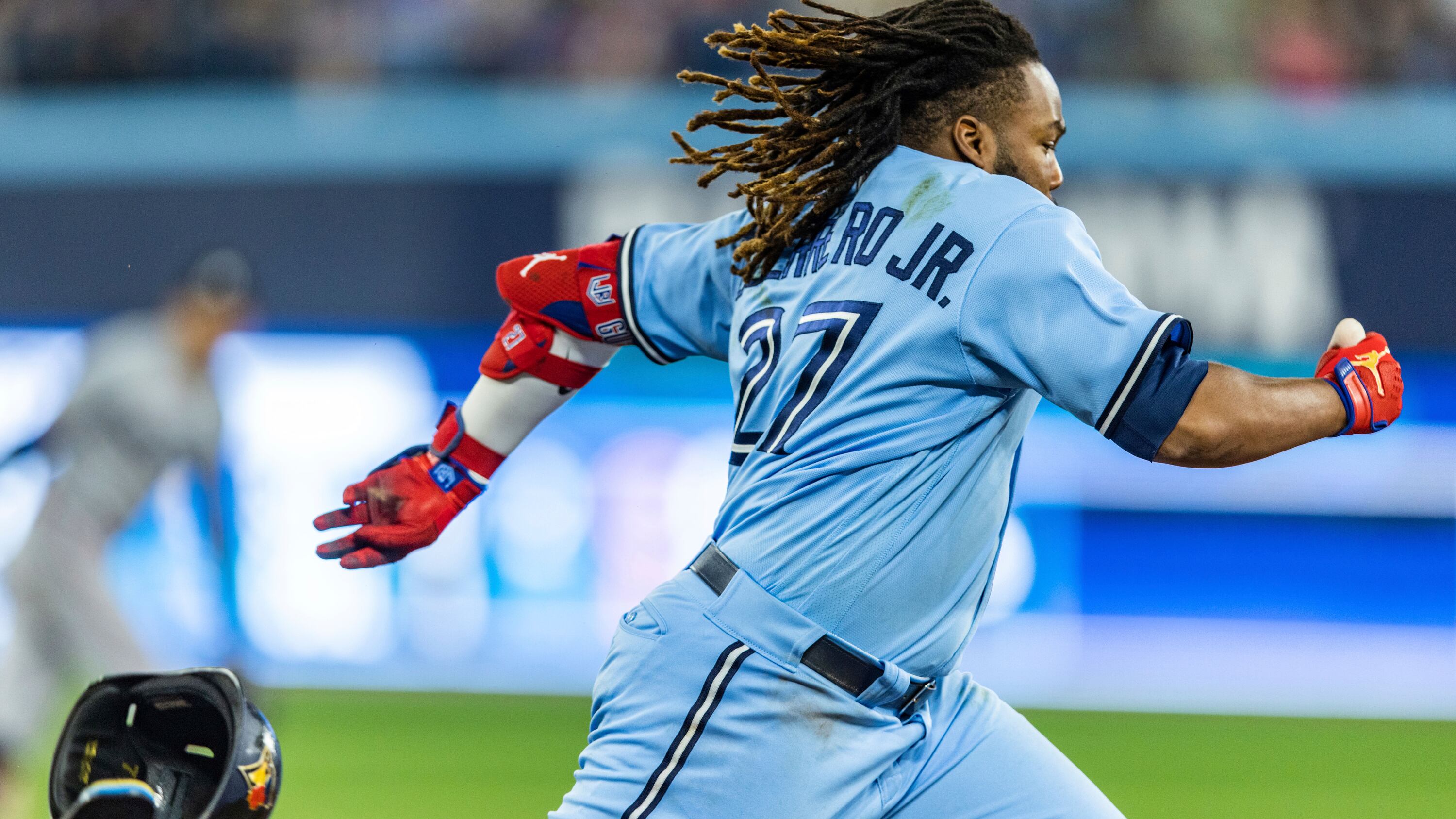 Por los Azulejos, los dominicanos Vladimir Guerrero Jr. de 5-2 con una anotada y una empujada; y Santiago Espinal de 2-1. El mexicano Alejandro Kirk de 4-2 con una anotada.