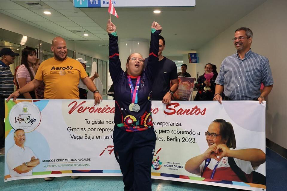 El alcalde de Vega Baja, Marcos Cruz Molina, acudió con un grupo de vegabajeños al aeropuerto internacional Luis Muñoz Marín para recibir y agasajar a Verónica Bruno Santos, miembro de la Academia de Deporte Adaptado, quien ganó Oro y Plata en las Olimpiadas Especiales celebradas en Berlín, Alemania.