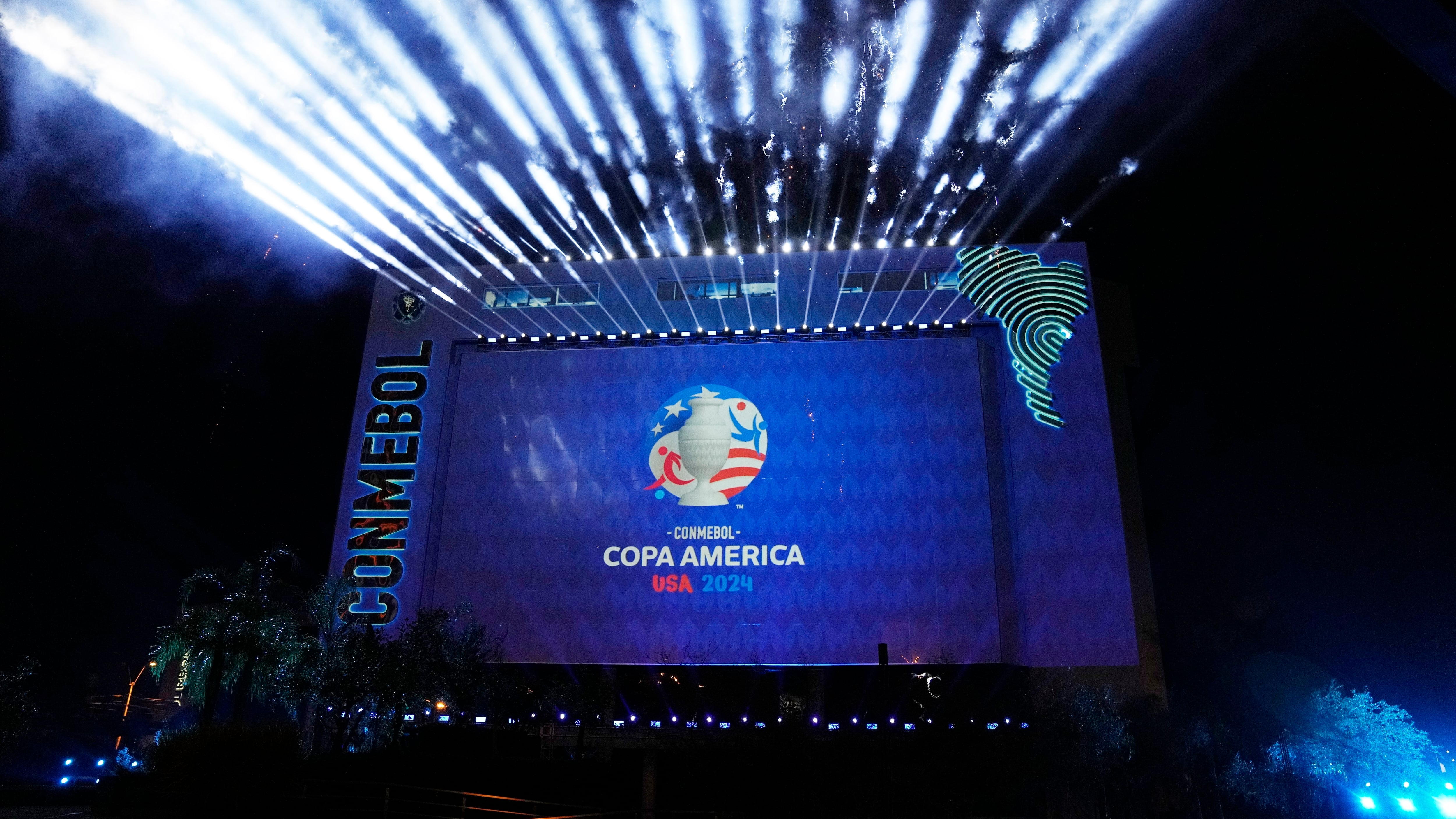 La CONMEBOL devela el lunes 17 de julio del 2023, el logotipo de la Copa America 2024 que se disputará en Estados Unidos. (AP Foto/Jorge Saenz) AP (Jorge Saenz/AP)