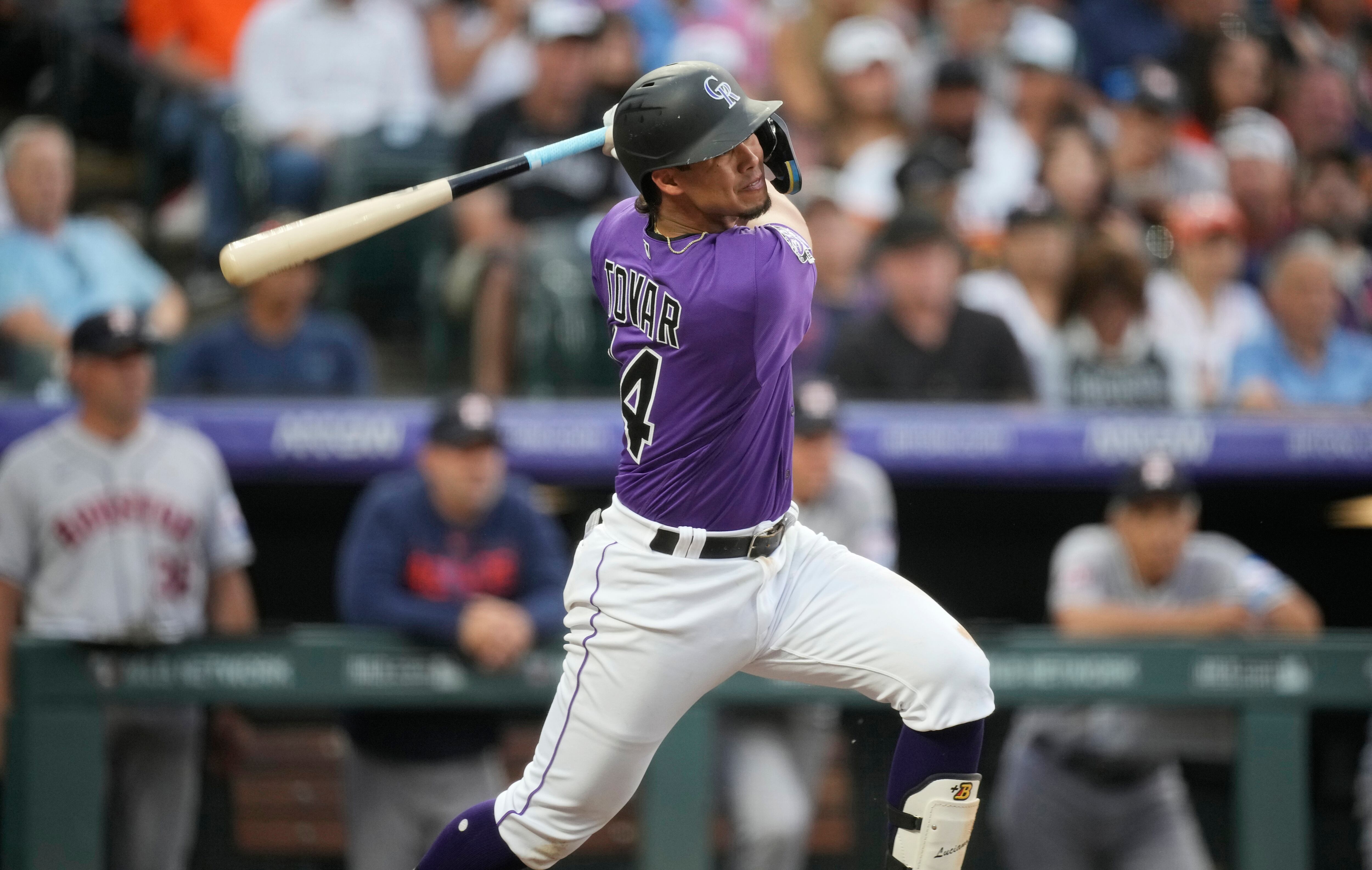 DENVER (AP) — Ezequiel Tovar bateó un lineazo de triple que significó la ventaja en la cuarta entrada, y los Rockies superaron el martes 4-3 a los Astros de Houston en un duelo de bullpens en el que Colorado empleó a siete lanzadores.