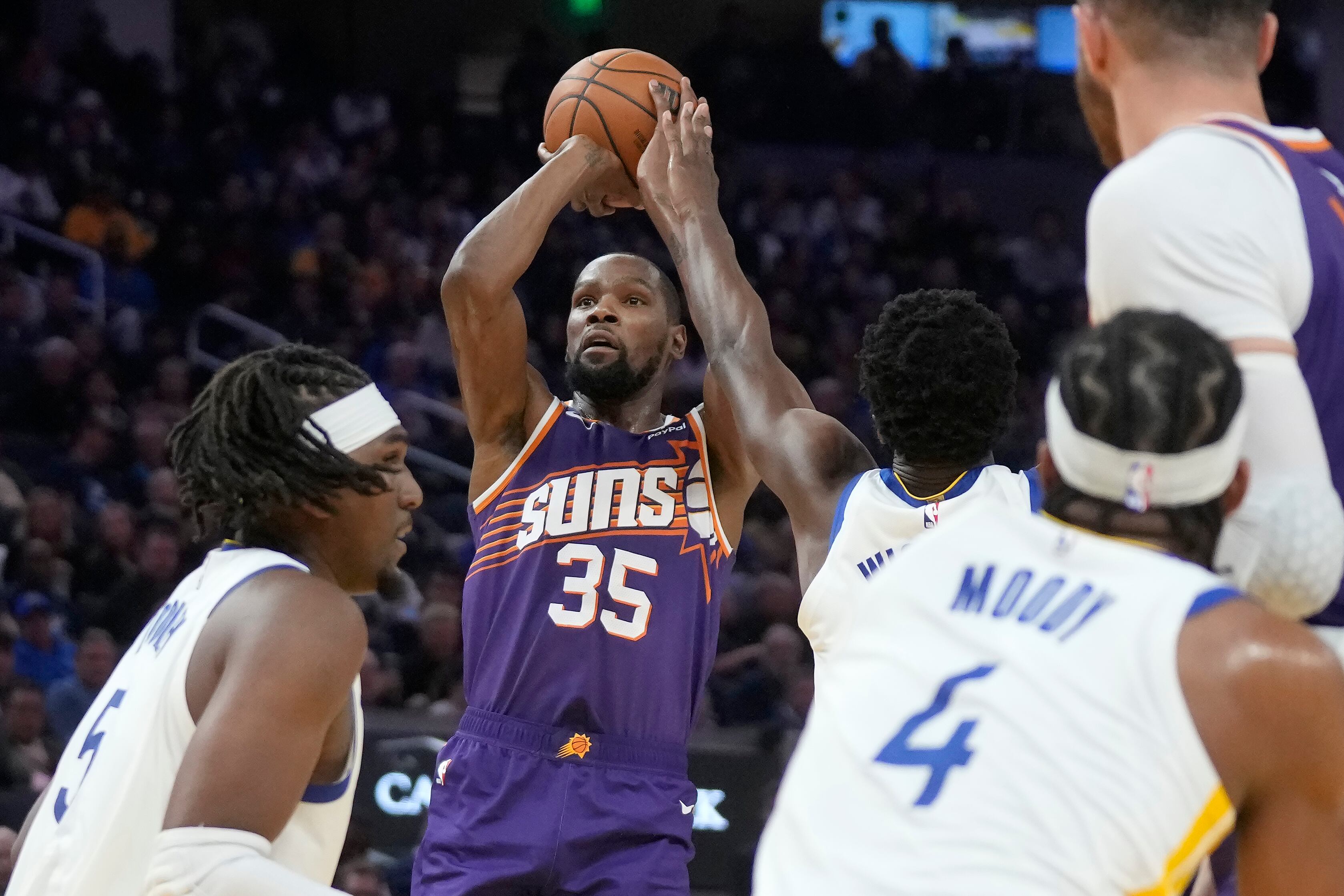 SAN FRANCISCO (AP) — Devin Booker encestó en bandeja para dar la ventaja a los Suns a 4:51 del final, antes de atinar un triple en una noche en que totalizó 32 puntos para que los Suns de Phoenix vencieran el martes 108-104 a los Warriors de Golden State.