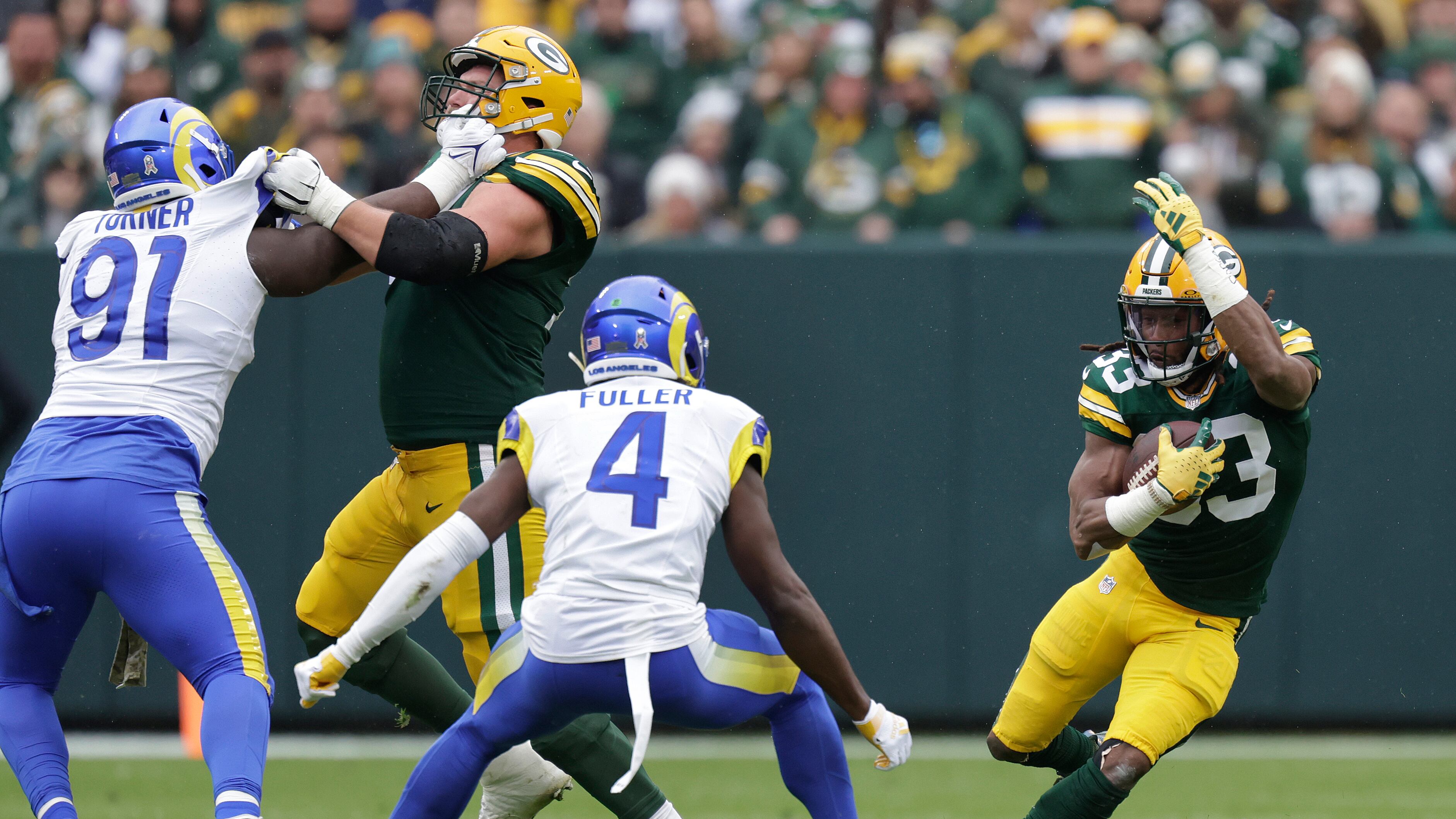 El tight end novato Luke Musgrave logró su primera anotación en la NFL con pase de 20 yardas de Jordan Love y Anders Carlson convirtió 3 de 4 intentos de gol de campo por los Packers (3-5). Love completó 20 de 26 pases para 228 yardas a pesar de ser capturado en cuatro ocasiones.