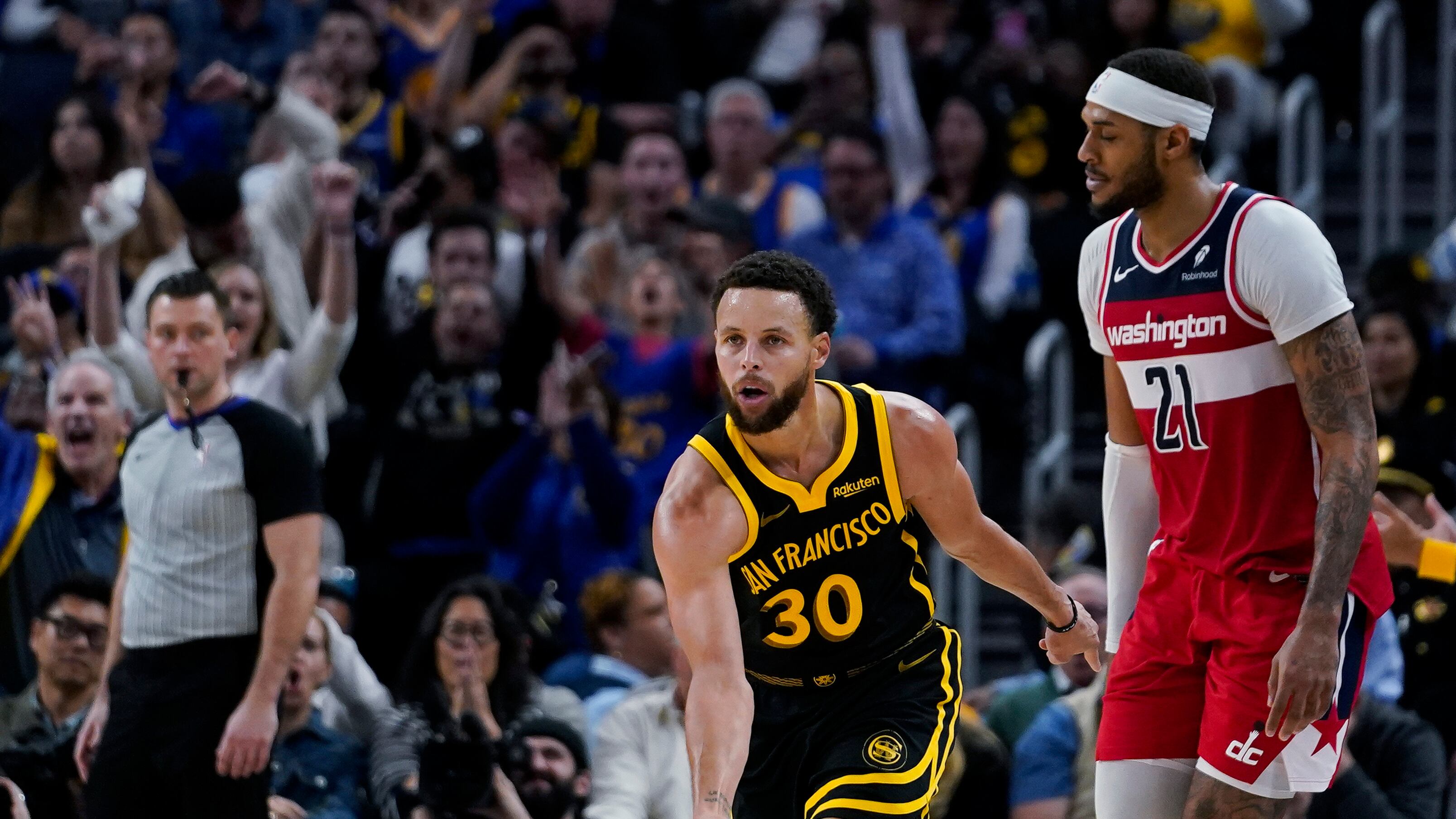 SAN FRANCISCO (AP) — Stephen Curry atinó ocho triples, su mayor número en la campaña, en una noche en que totalizó 30 puntos y siete asistencias, para superar en el duelo a Jordan Poole, quien volvió al Chase Center para el paritdo que los Warriors de Golden State ganaron el viernes 129-118 a los Wizards de Washington.