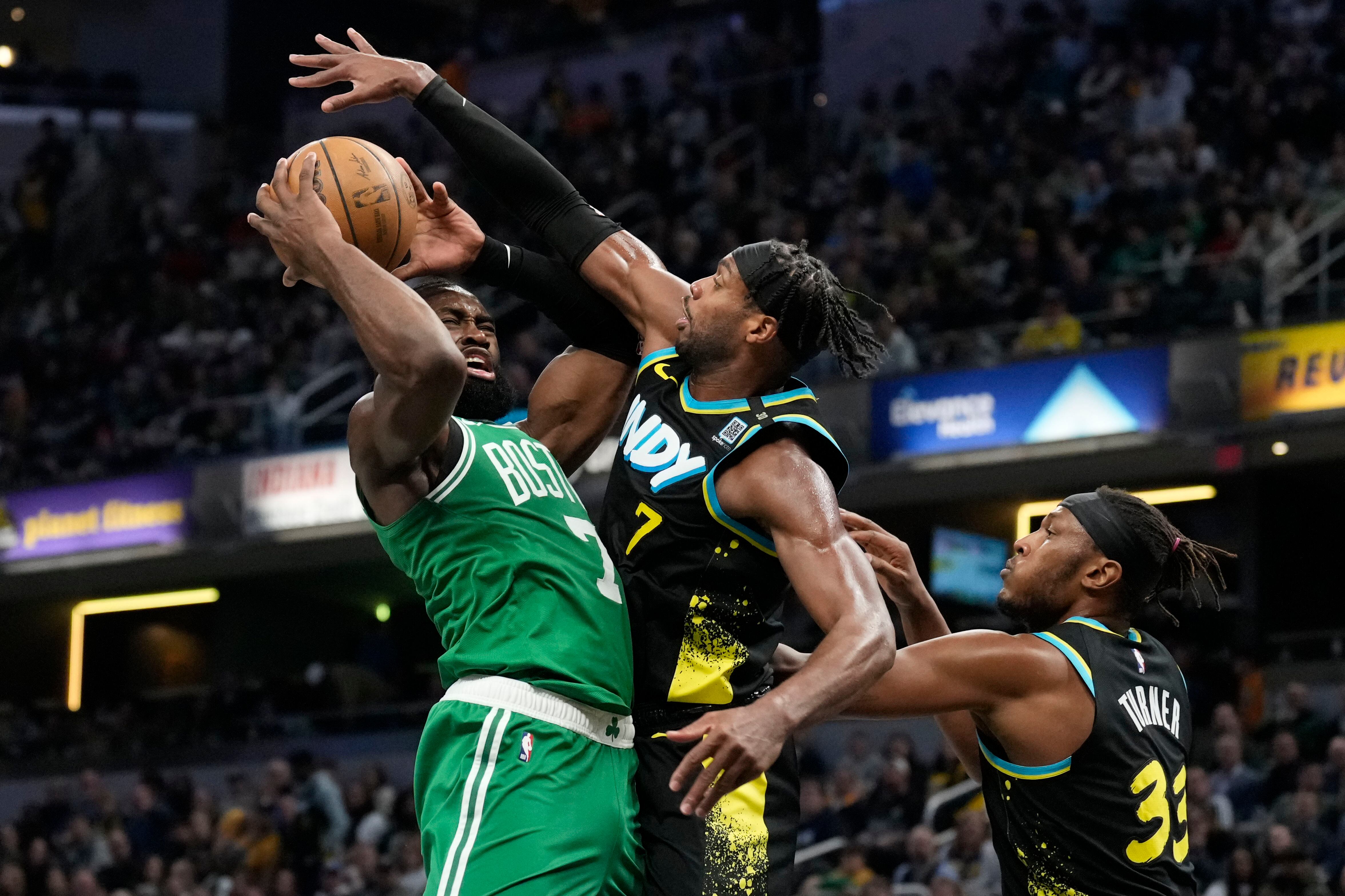 Boston, que llegó al encuentro en el tercer sitio de la NBA en porcentaje de defensa contra disparos de campo (,449) y tercero en índice de rebotes, limitó a los Pacers a su menor total de puntos de la campaña.