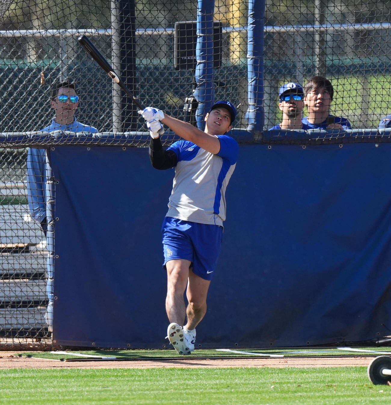 Shonei Ohtani dio un espectáculo en su primera práctica con los Dodgers