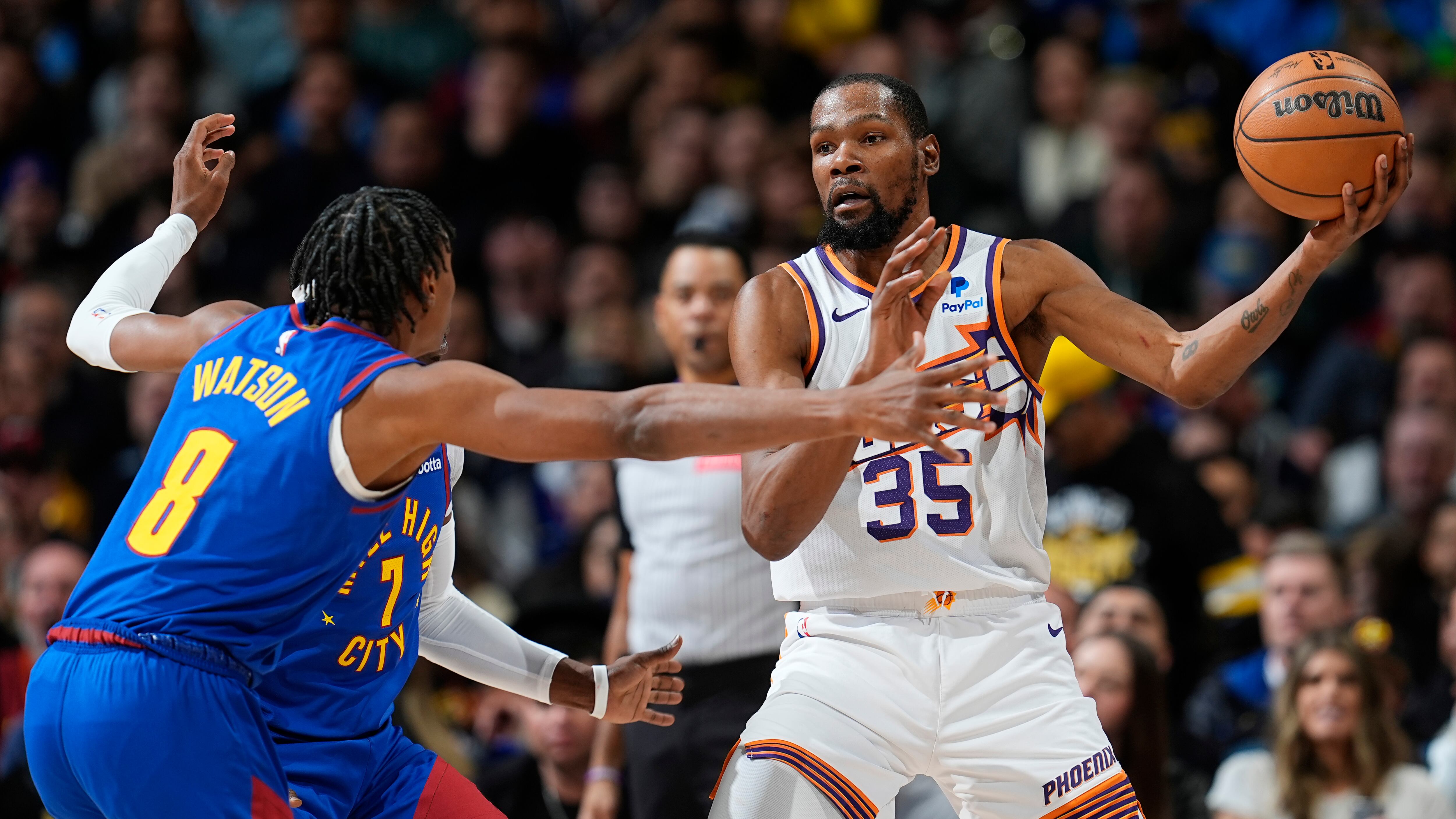 Kevin Durant sumó 30 puntos, 13 rebotes y cinco tapas para que los Suns de Phoenix consiguieran su segundo triunfo de este mes en Denver, al superar el miércoles 104-97 a los Nuggets, campeones defensores de la NBA.