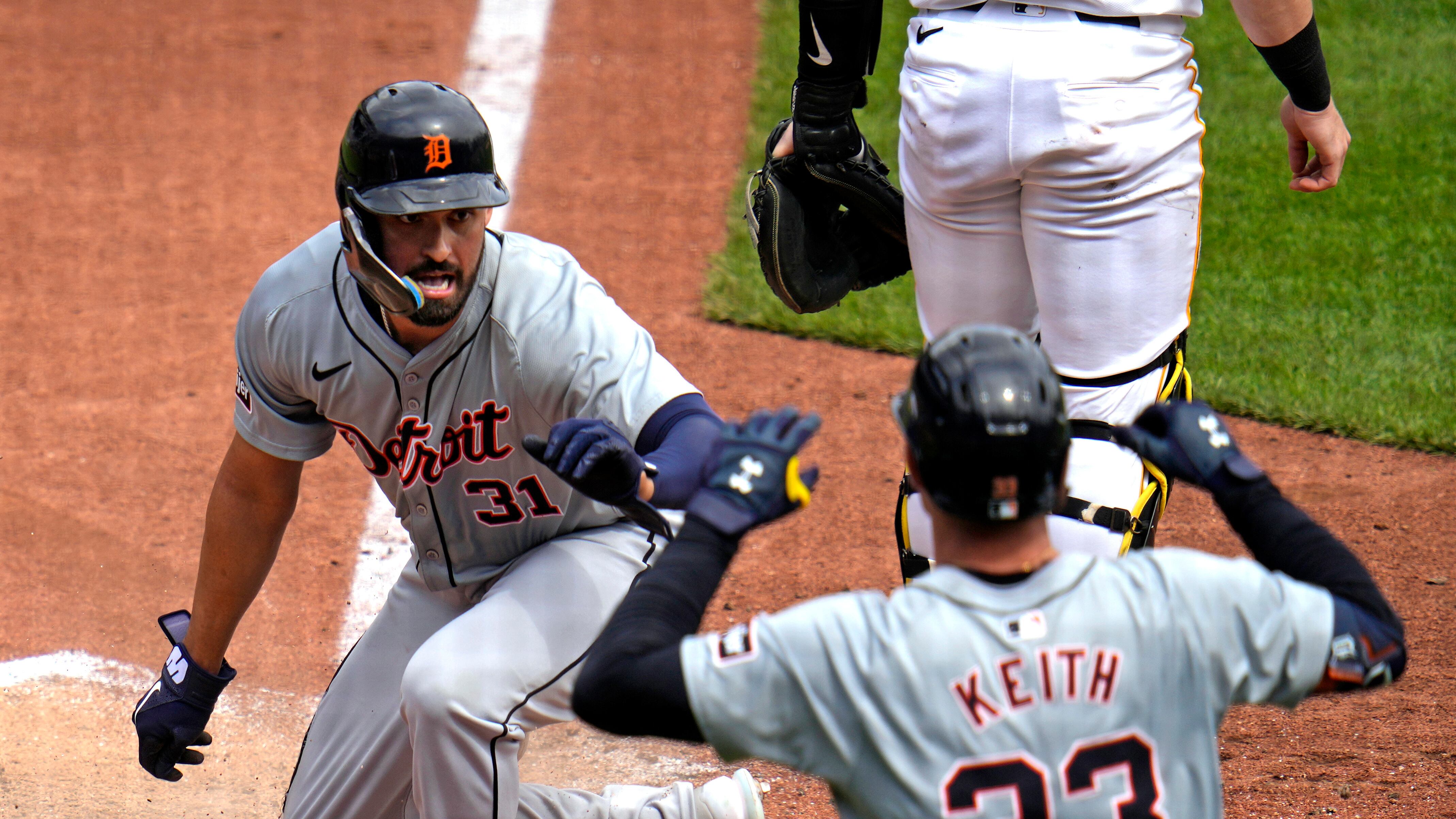 Detroit ganó por apenas segunda vez en seis partidos al emboscar al cerrador de los Piratas David Bednar (1-1), quien malogró su tercera oportunidad de salvamento en cuatro intentos.