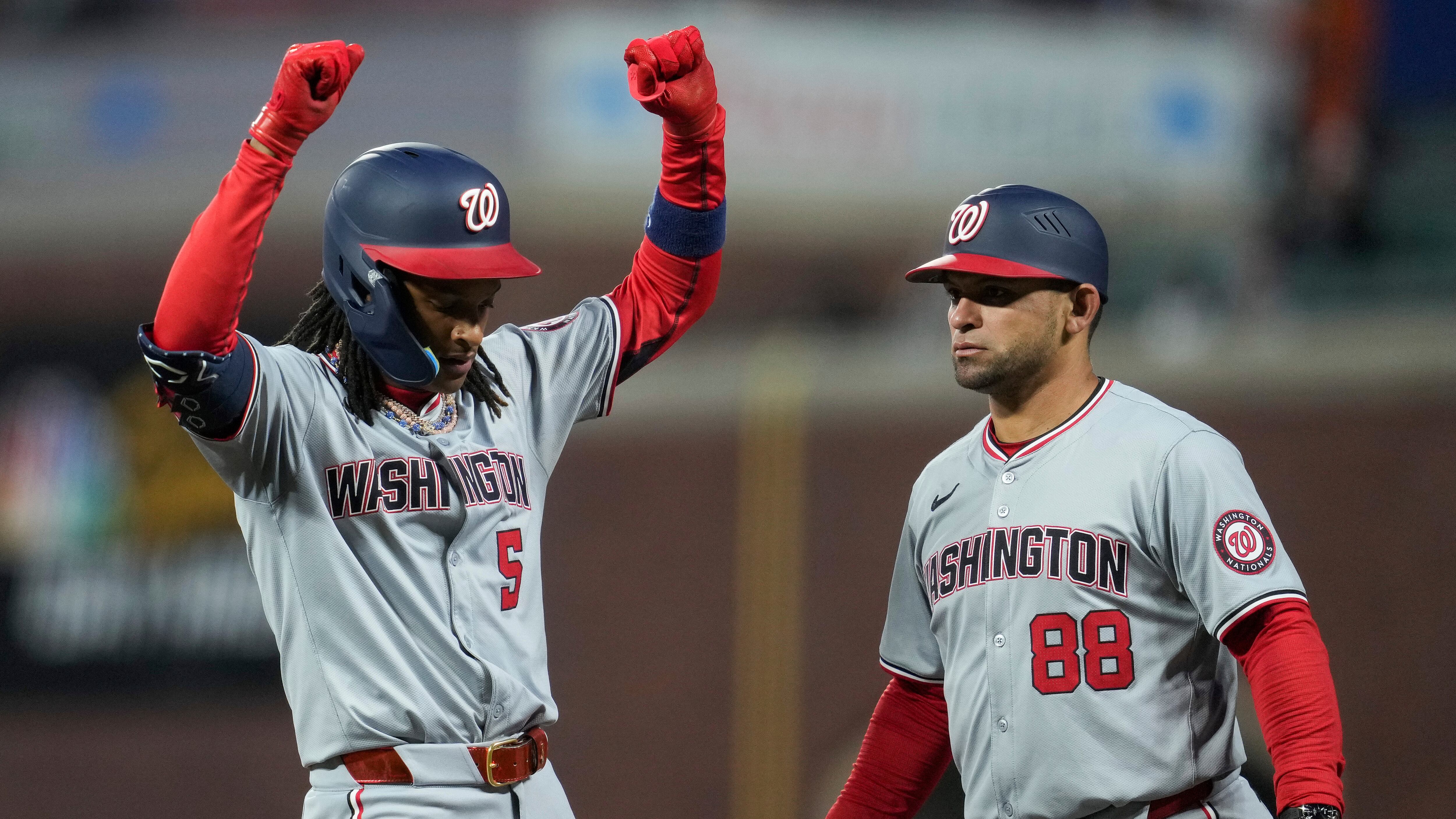 SAN FRANCISCO (AP) — CJ Abrams aportó un jonrón y tres impulsadas tras perderse tres juegos por un golpe en el meñique de la mano izquierda, y los Nacionales de Washington se impusieron el martes 5-3 a los Gigantes de San Francisco.