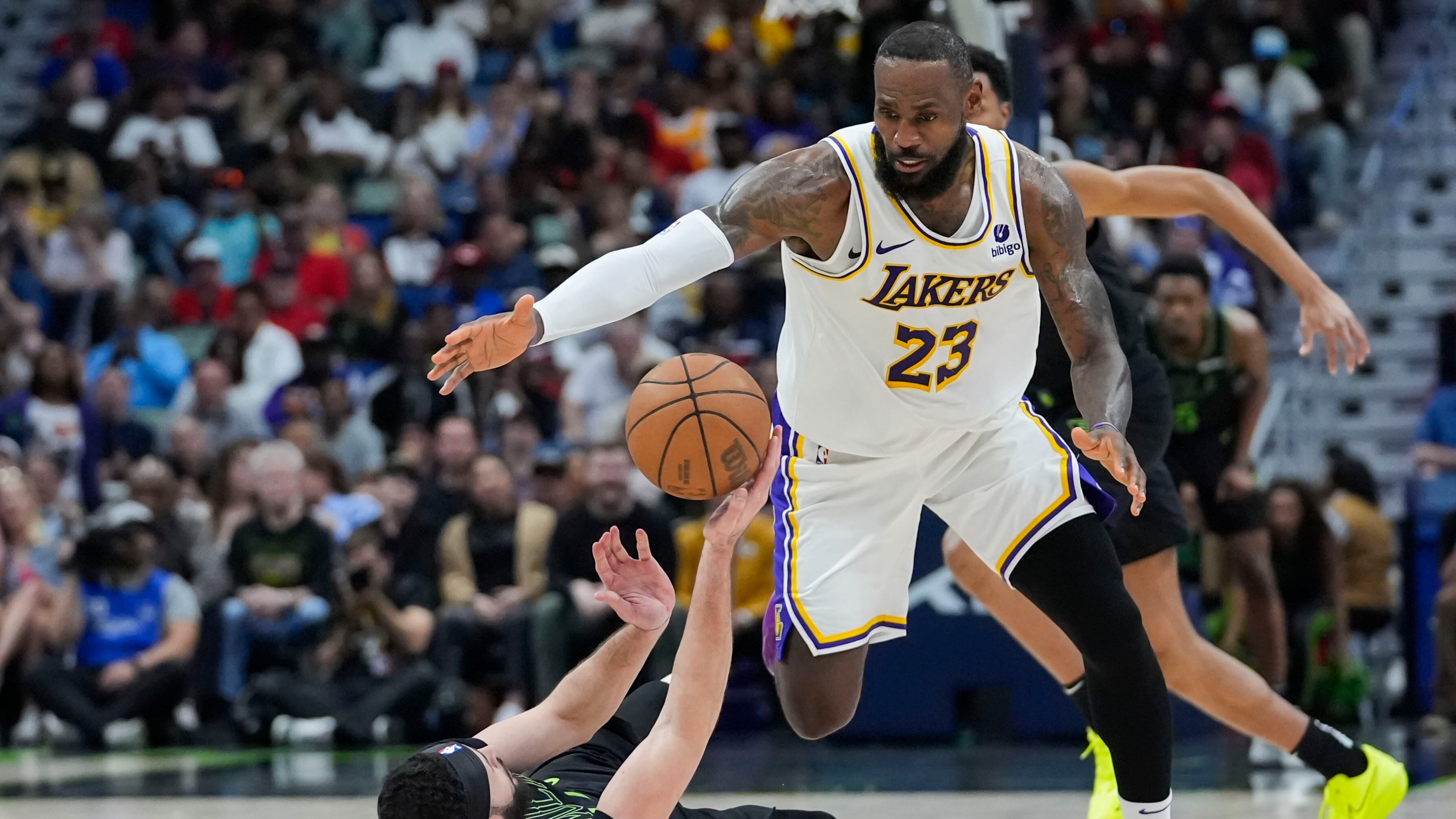 LeBron James terminó con 28 puntos, 17 asistencias, 11 rebotes y cinco robos de balón, y los Lakers de Los Ángeles reclamaron la octava posición de la clasificación en la Conferencia Oeste con una victoria por 124-108 sobre Nueva Orleans el domingo, que bajó a los Pelicans del codiciado sexto lugar de la siembra.