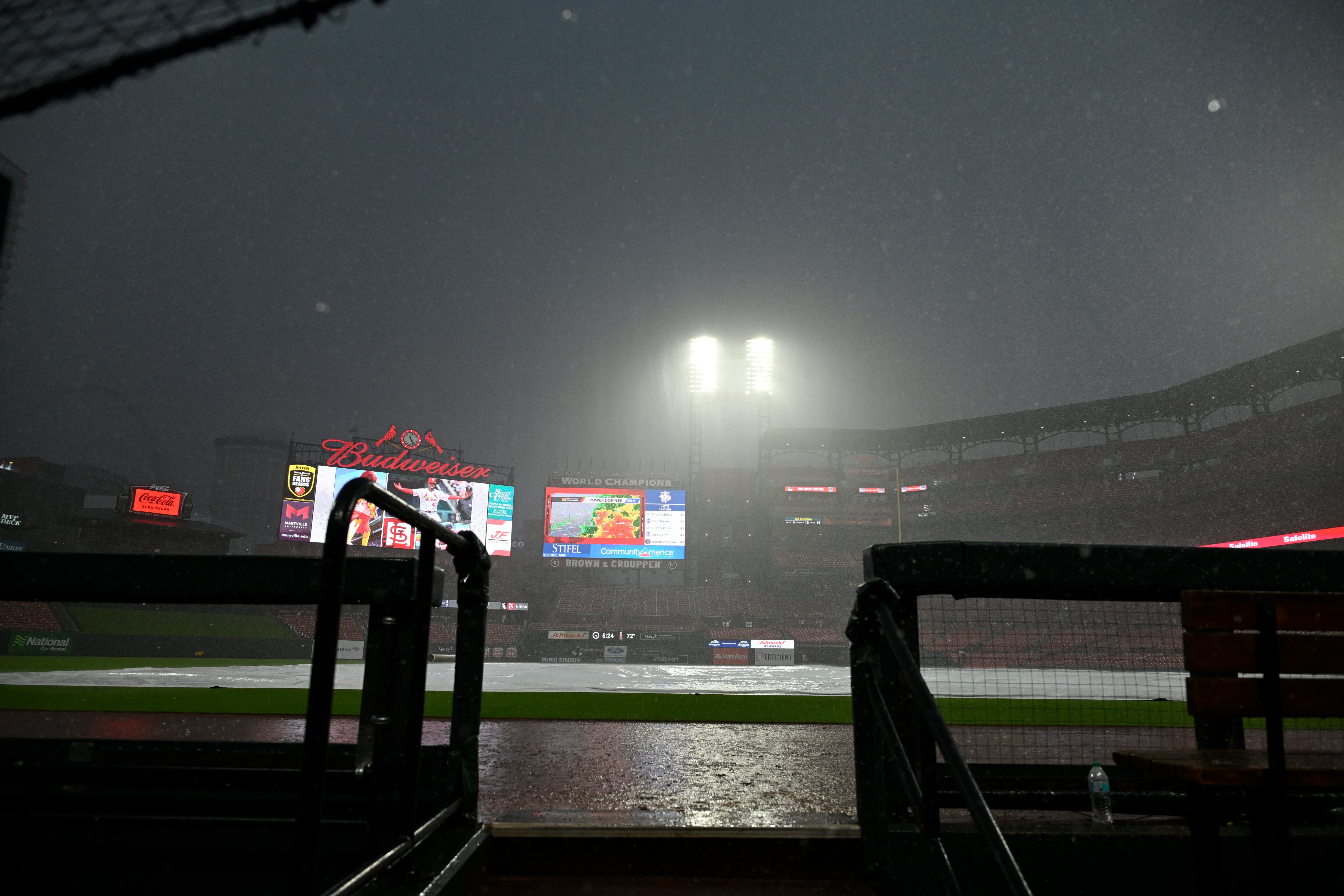 Brebbia ponchó luego a Lars Nootbaar y a Masyn Winn, quien estaba en la caja de bateo cuando comenzó la lluvia.