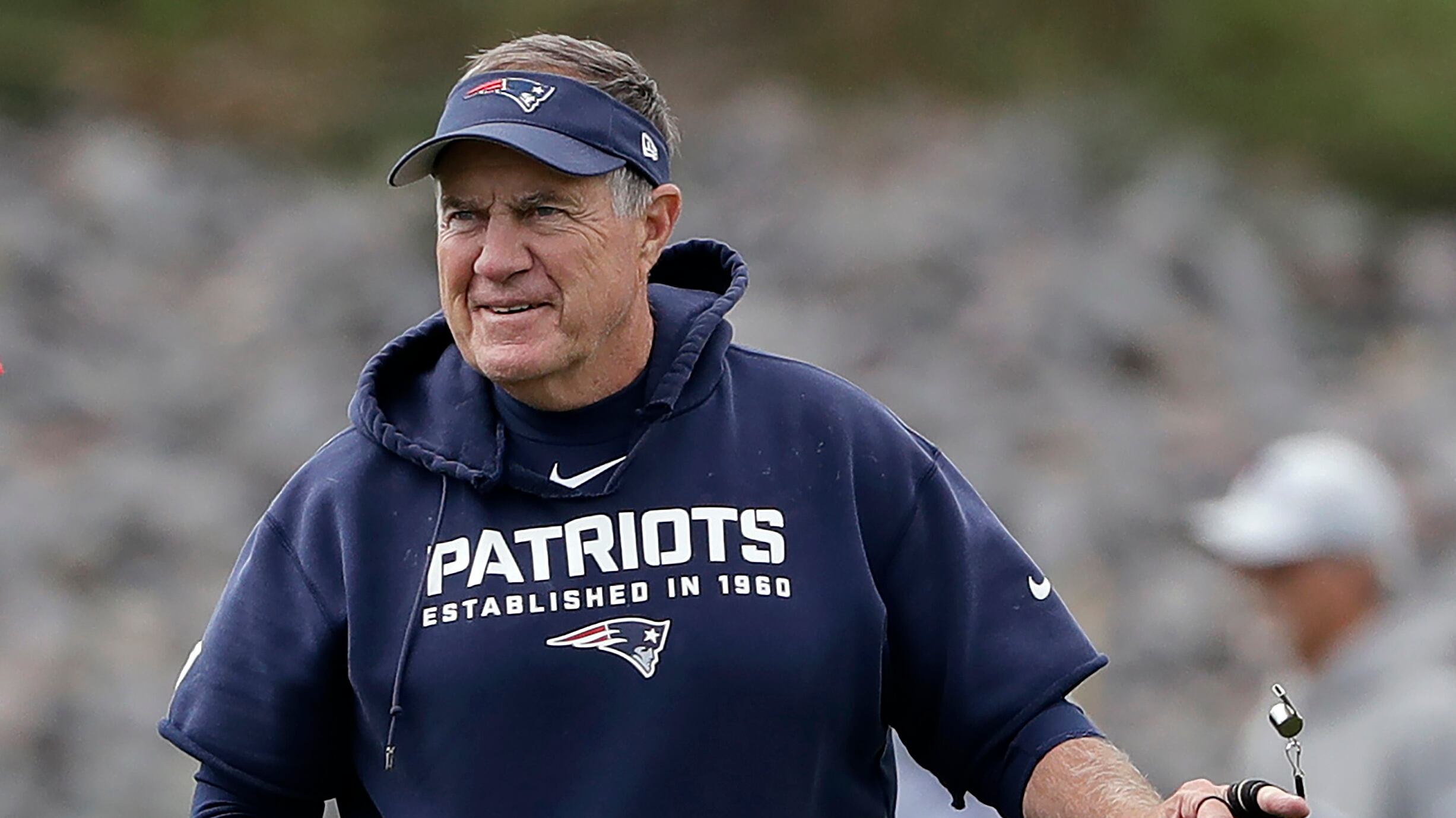 ARCHIVO - El entrenador en jefe de los Patriots de Nueva Inglaterra, Bill Belichick, suena su silbato durante una práctica de fútbol americano de la NFL, el miércoles 18 de septiembre de 2019, en Foxborough, Massachusetts. El seis veces campeón de la (Steven Senne/AP)