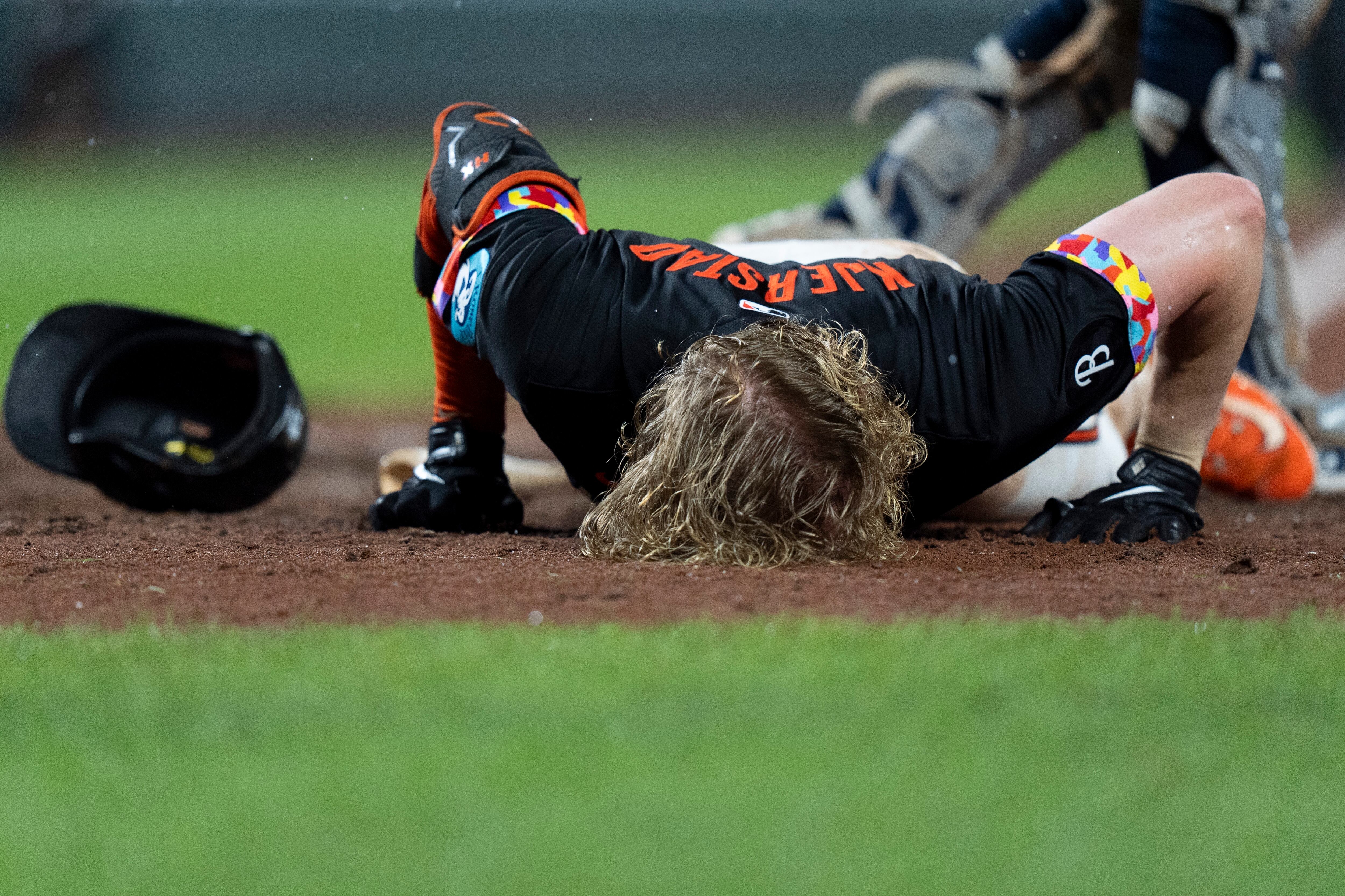 Las bancas se vaciaron y los peloteros y coaches de ambos equipos intercambiaron algunos tirones y empujones en la parte baja del noveno episodio, después de que Heston Kjerstad fue golpeado en la cabeza por un lanzamiento de Clay Holmes.