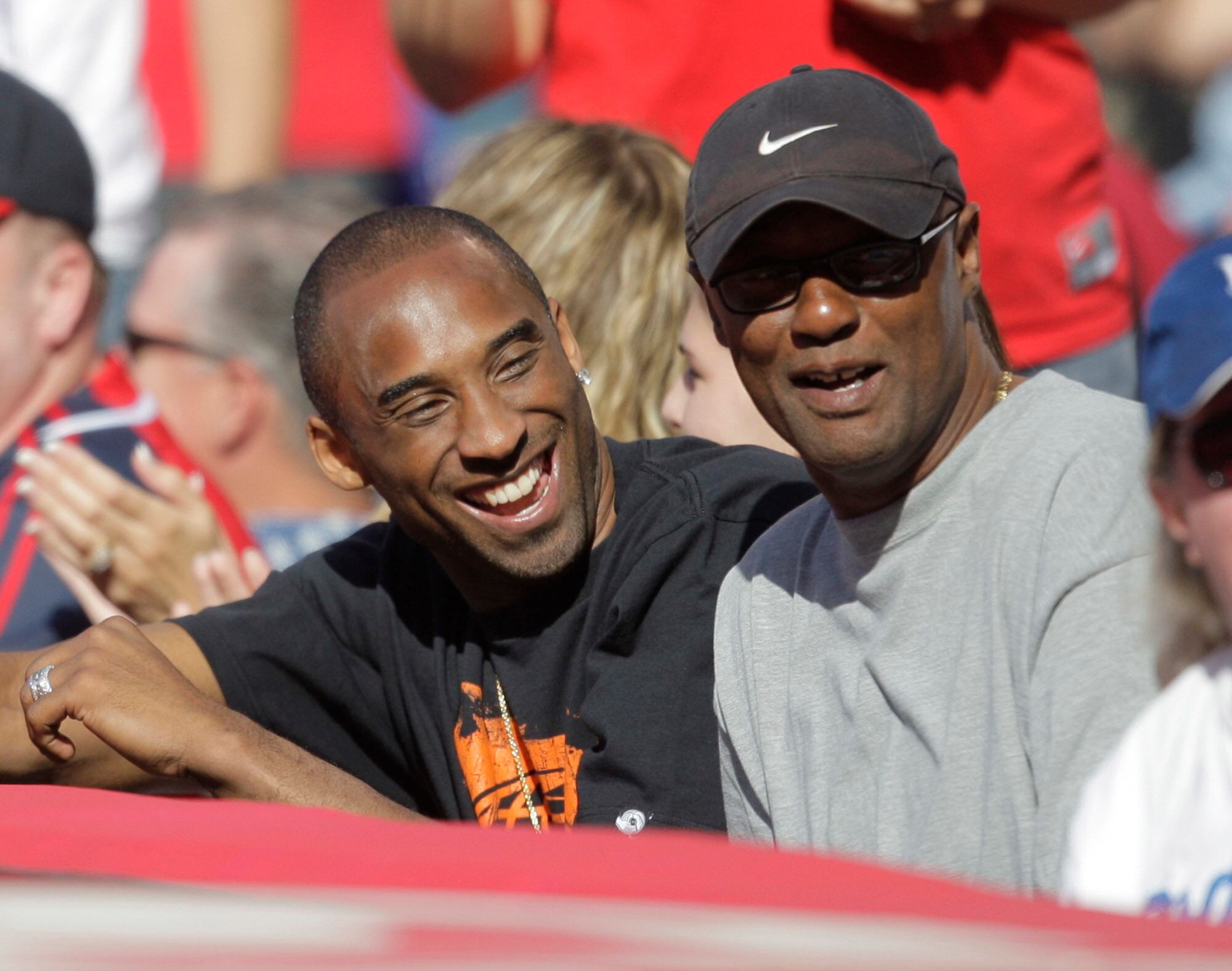 ARCHIVO - Kobe Bryant, de los Lakers de Los Ángeles, a la izquierda, habla con su padre, Joe, mientras ven un partido entre los Angelinos de Los Ángeles y los Dodgers de Los Ángeles en Anaheim, California, el domingo 21 de junio de 2009. Joe "Jellybean AP (Jae C. Hong/AP)