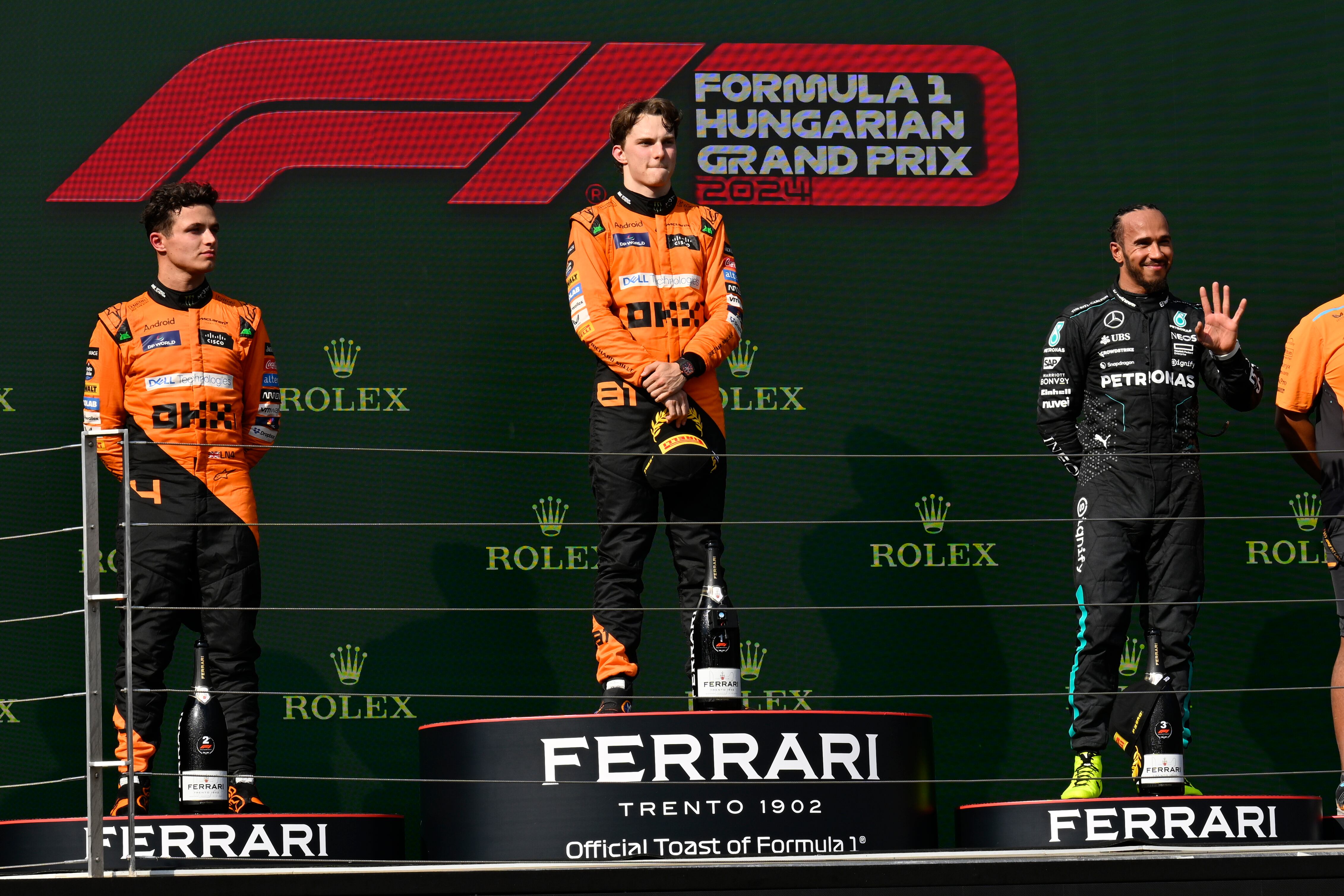 “Este es el día con el que soñé desde niño, parado en lo más alto del podio”, dijo el piloto de 23 años. “Un poco complicado al final, pero me puse en buena posición desde el inicio. Confiaba en Lando y creo que fue una decisión justa el cambio al final”.