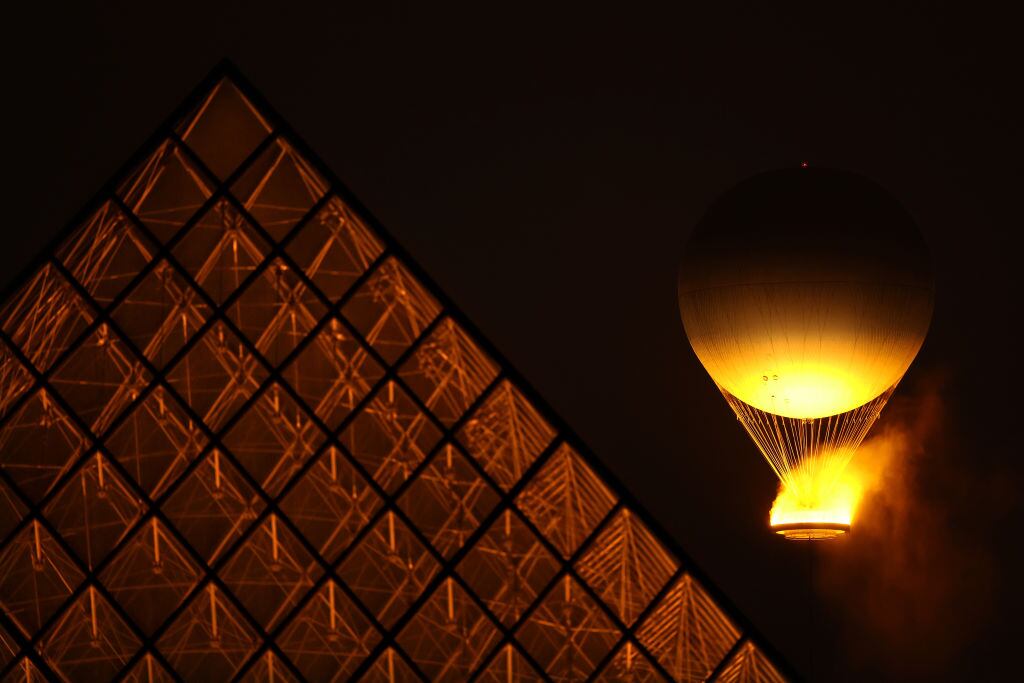 Sobre el Jardín de las Tullerías, luego de varios relevos que destacados y legendarios deportistas franceses, Marie-José Pérec (ex atleta) y Teddy Riner (judoca) tuvieron el honor de encender el pebetero ubicado en la base de un globo aerostático, que luego de ese se elevó por los cielos de París.