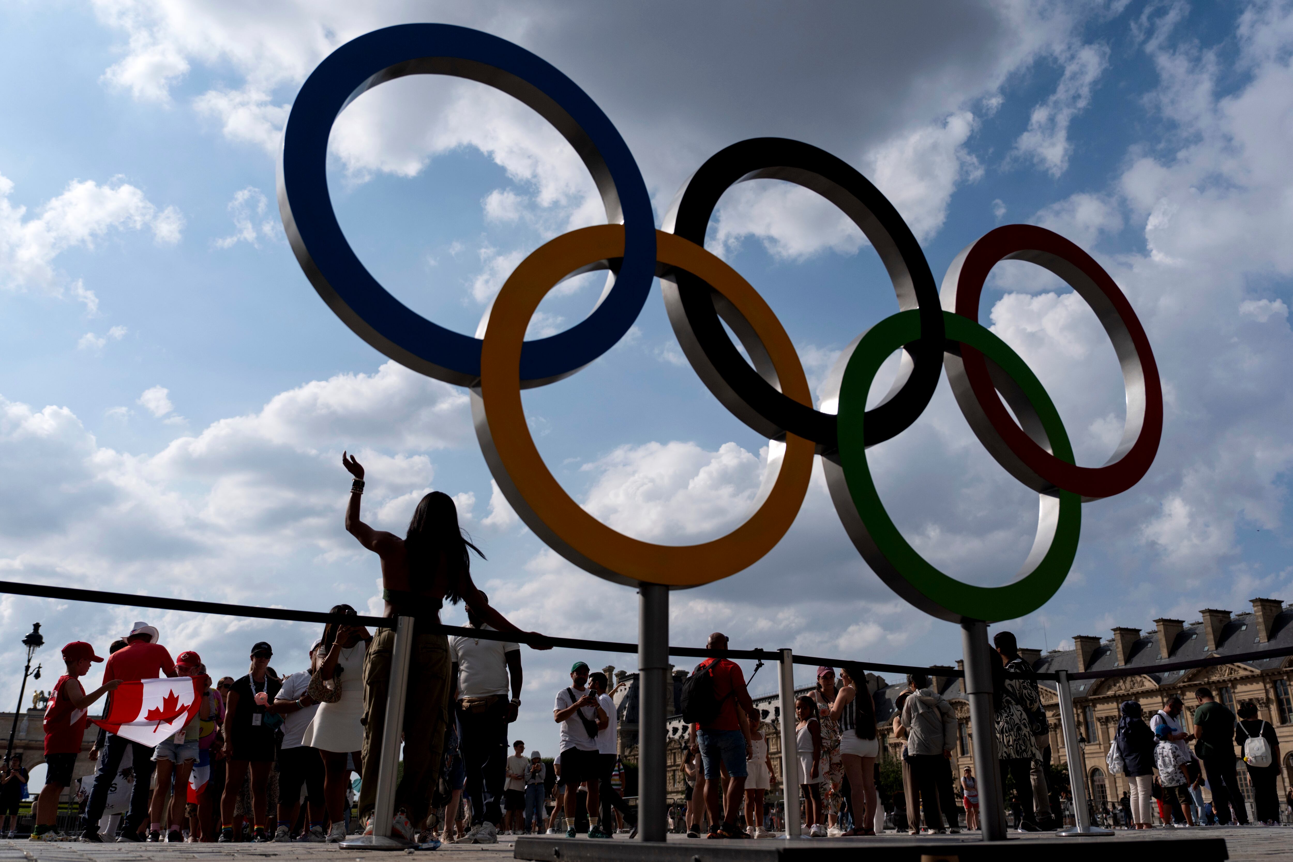 Los anillos olímpicos frente al Museo de Louvre, el jueves 1 de agosto de 2024, en París. (AP Foto/David Goldman) AP (David Goldman/AP)