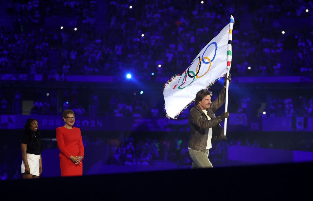 LOS ÁNGELES (AP) — Es el turno de Los Ángeles para la antorcha. La alcaldesa Karen Bass aceptó la bandera olímpica en la ceremonia de clausura de París el domingo, antes de entregársela a un representante clave de los negocios locales de Los Ángeles, Tom Cruise, quien en un viaje pregrabado en motocicleta, avión y paracaídas inició la cuenta regresiva para 2028.