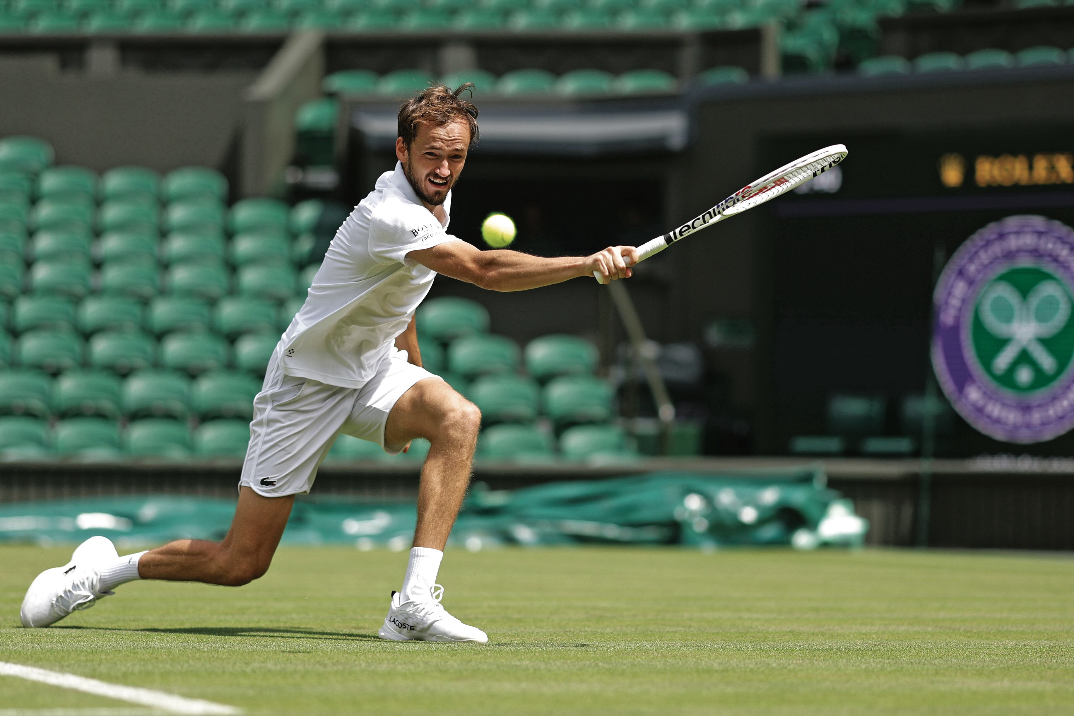 - La tierra es una superficie lenta, la pelota bota alto. Es difícil vencer al oponente solo con potencia. Es cuestión de efecto y de una técnica más sofisticada. En hierba, el tiempo de reacción es mínimo. Medvedev está acostumbrado a jugar muy por detrás de la línea de fondo. Si su rival golpea de forma cortante en hierba, no tiene tiempo. La pista dura es óptima para sus puntos fuertes.
