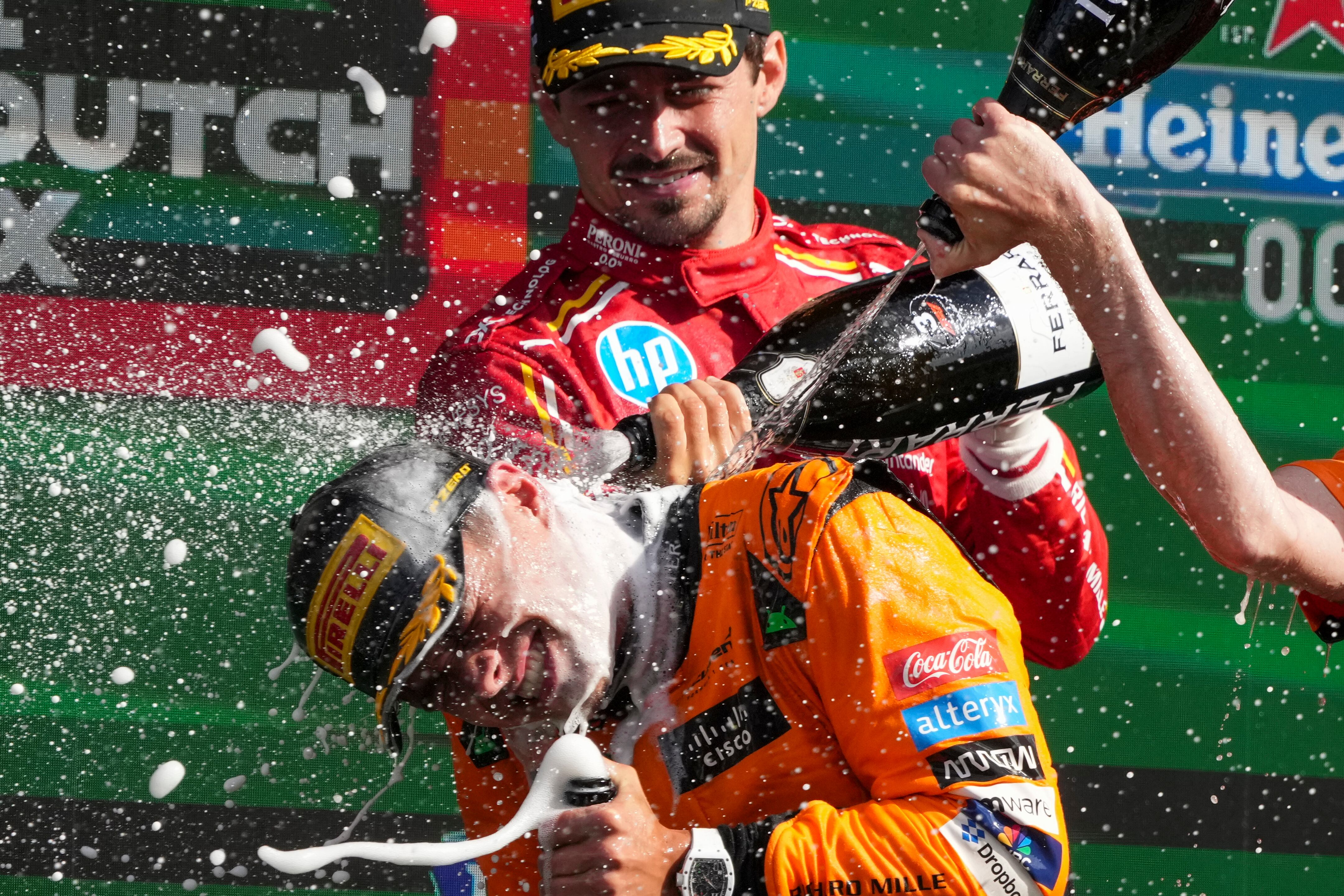 Verstappen se conformó con el segundo lugar, mientras que Charles Leclerc de Ferrari completó el podio tras resistir los embates de Oscar Piastri, el compañero de equipo de Norris.