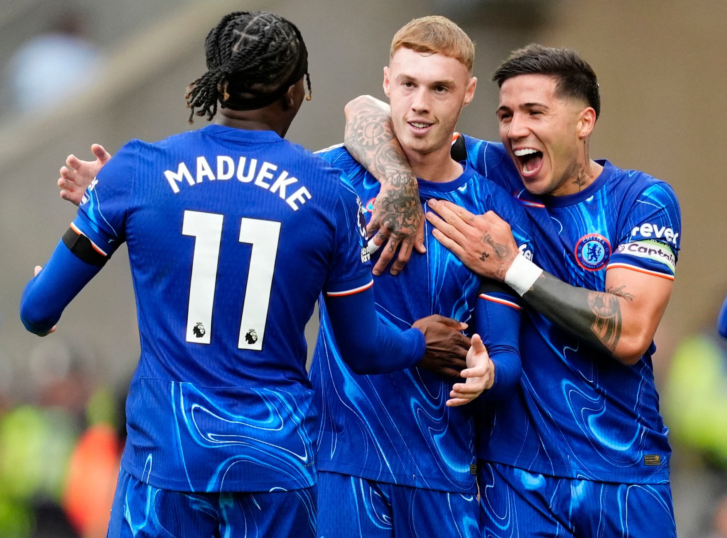 Nicolas Jackson anotó de cabeza para adelantar a Chelsea a los 27 minutos y el brasileño Matheus Cunha niveló a los 27. Palmer firmó su golazo en el segundo minuto del tiempo añadido del primer tiempo, pero Jorgen Strand Larsen empató para los Wolves a poco del descanso.