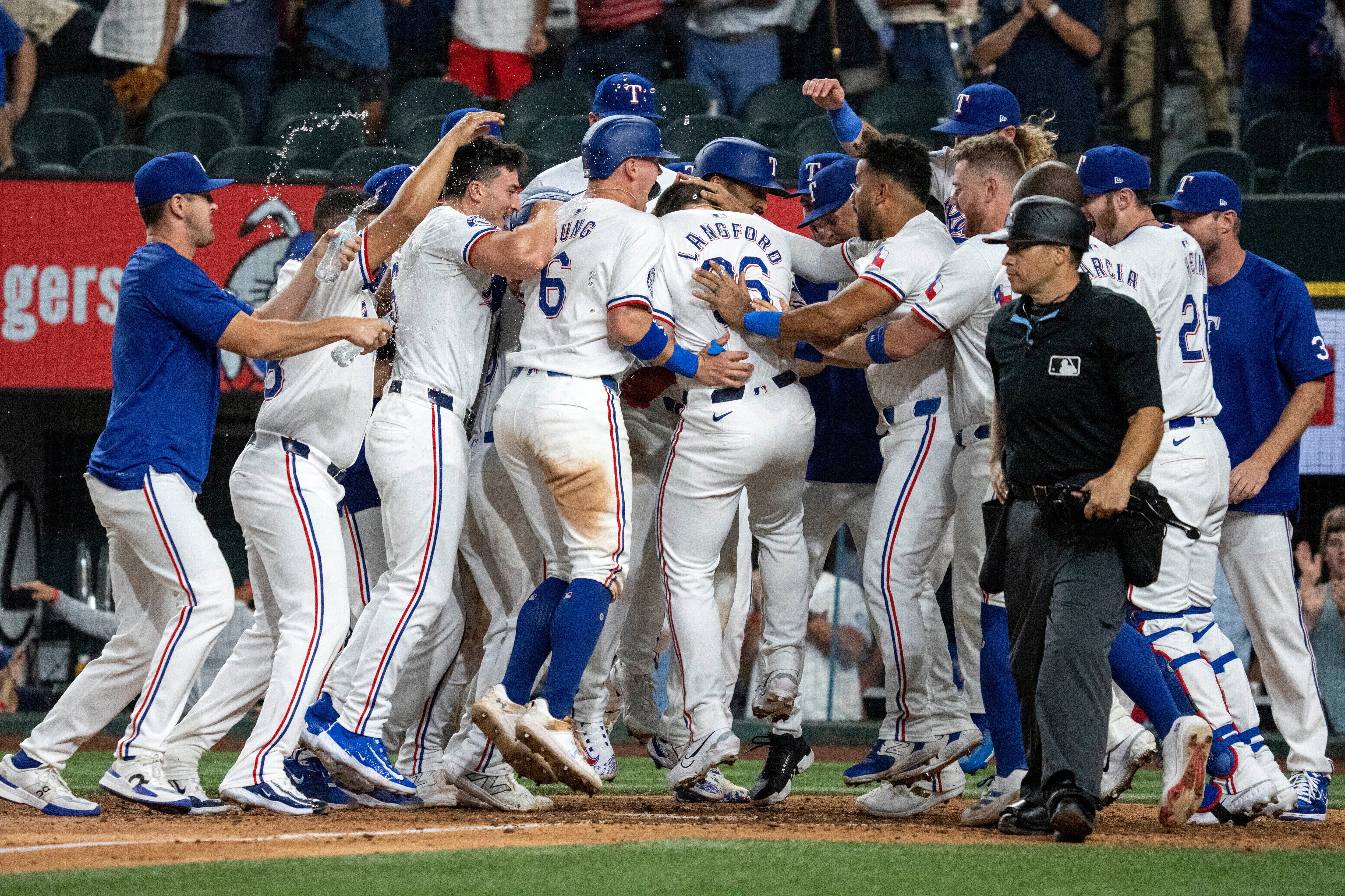 Langford conectó un jonrón de cuatro carreras para dejar tendido al rival, condenando a Holmes (2-5) a su undécimo salvamento desperdiciado en 40 oportunidades, la mayor cantidad de las Grandes Ligas. Texas se sobrepuso a una desventaja de 4-1 en el octavo inning.