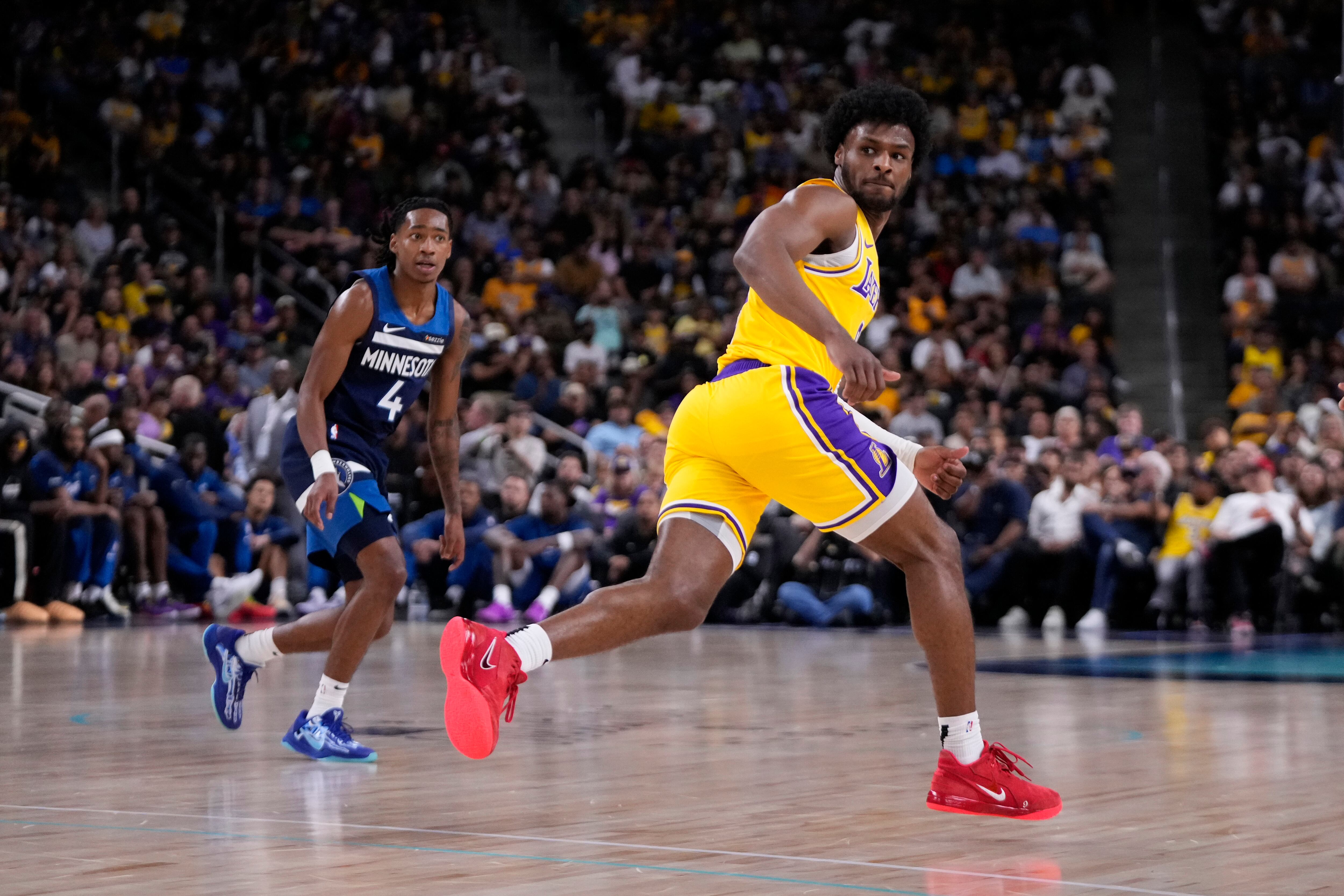 PALM DESERT, California, EE.UU. (AP) — Bronny James jugó el viernes su primer partido de pretemporada en la NBA, pero LeBron James no vistió siquiera el uniforme para acompañar a su hijo cuando los Lakers recibieron a los Timberwolves de Minnesota en el primero de dos duelos que Los Ángeles disputará en el Valle de Coachella.