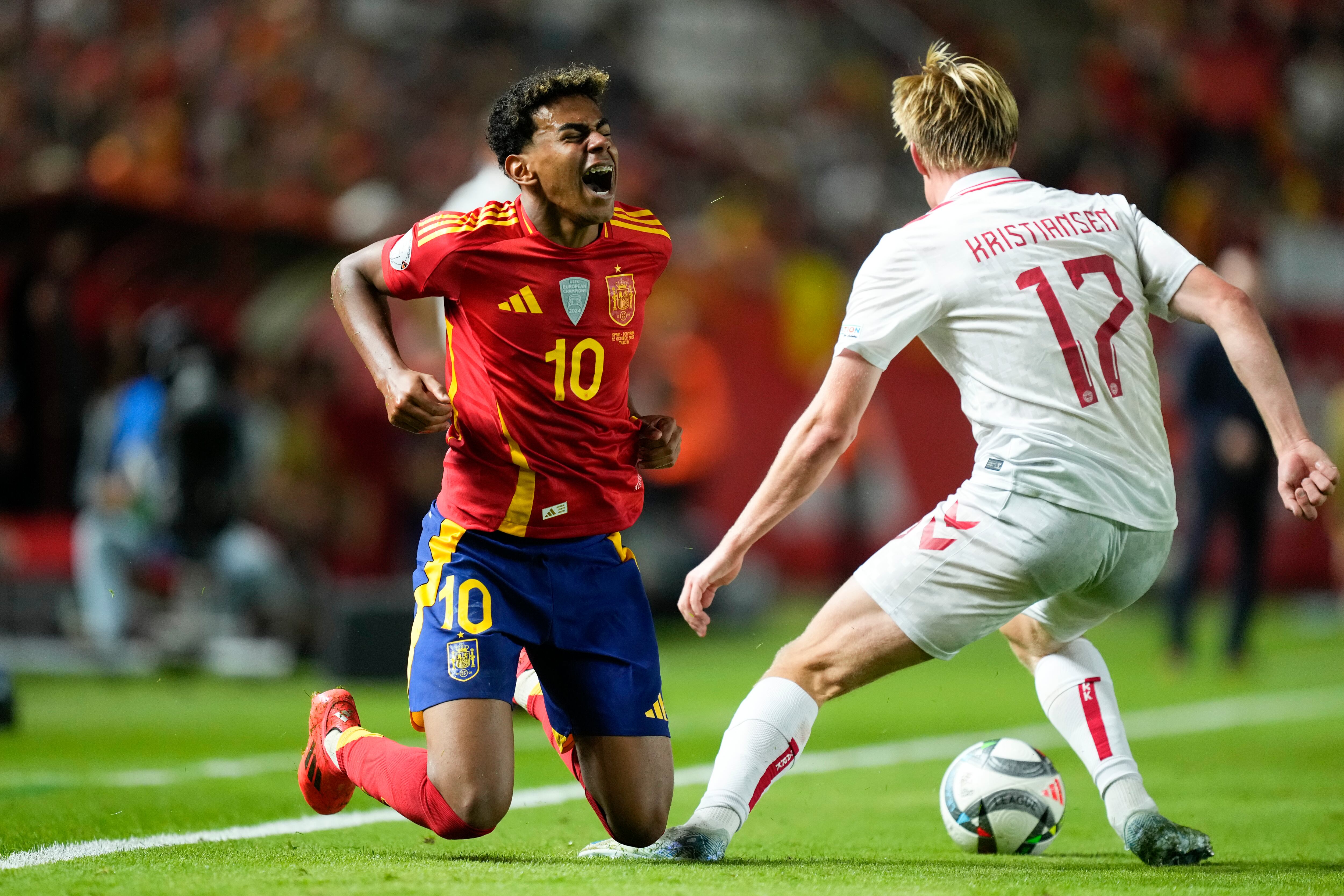 Un día después de que el delantero de 17 años ayudara a España a vencer 1-0 a Dinamarca, la Federación Española de Fútbol dijo el domingo que las pruebas indicaban que el astro del Barcelona se había lesionado un músculo de la pierna y que estaba siendo enviado de regreso a su club para evitar “el riesgo de una lesión”.