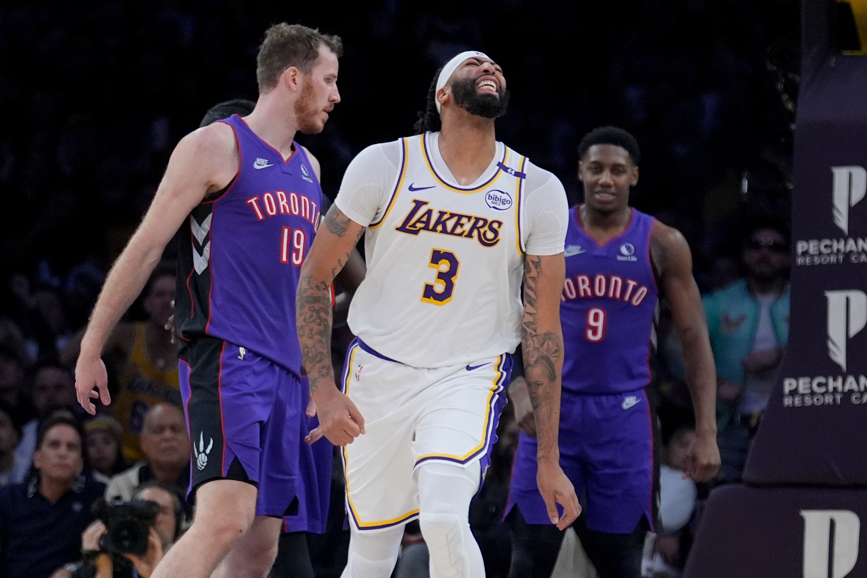 Se lesionó a mitad del tercer cuarto contra Toronto el domingo por la noche mientras realizaba un bloqueo sensacional de un intento de clavada de Poeltl, quien accidentalmente lo golpeó en la cara con su mano libre. Davis no regresó al encuentro, pero los Lakers arrollaron123-103 a los Raptors.