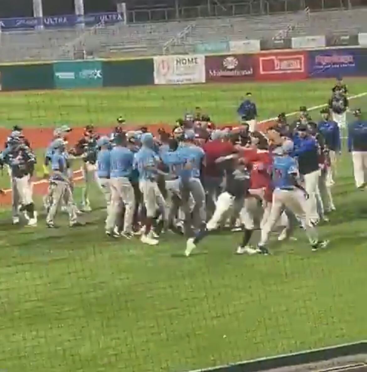 Durante el partido de béisbol de los Cangrejeros de Santurce y los Indios de Mayagüez hoy domingo, se formó una pelea entre múltiples jugadores que detuvo el juego por varios minutos.
