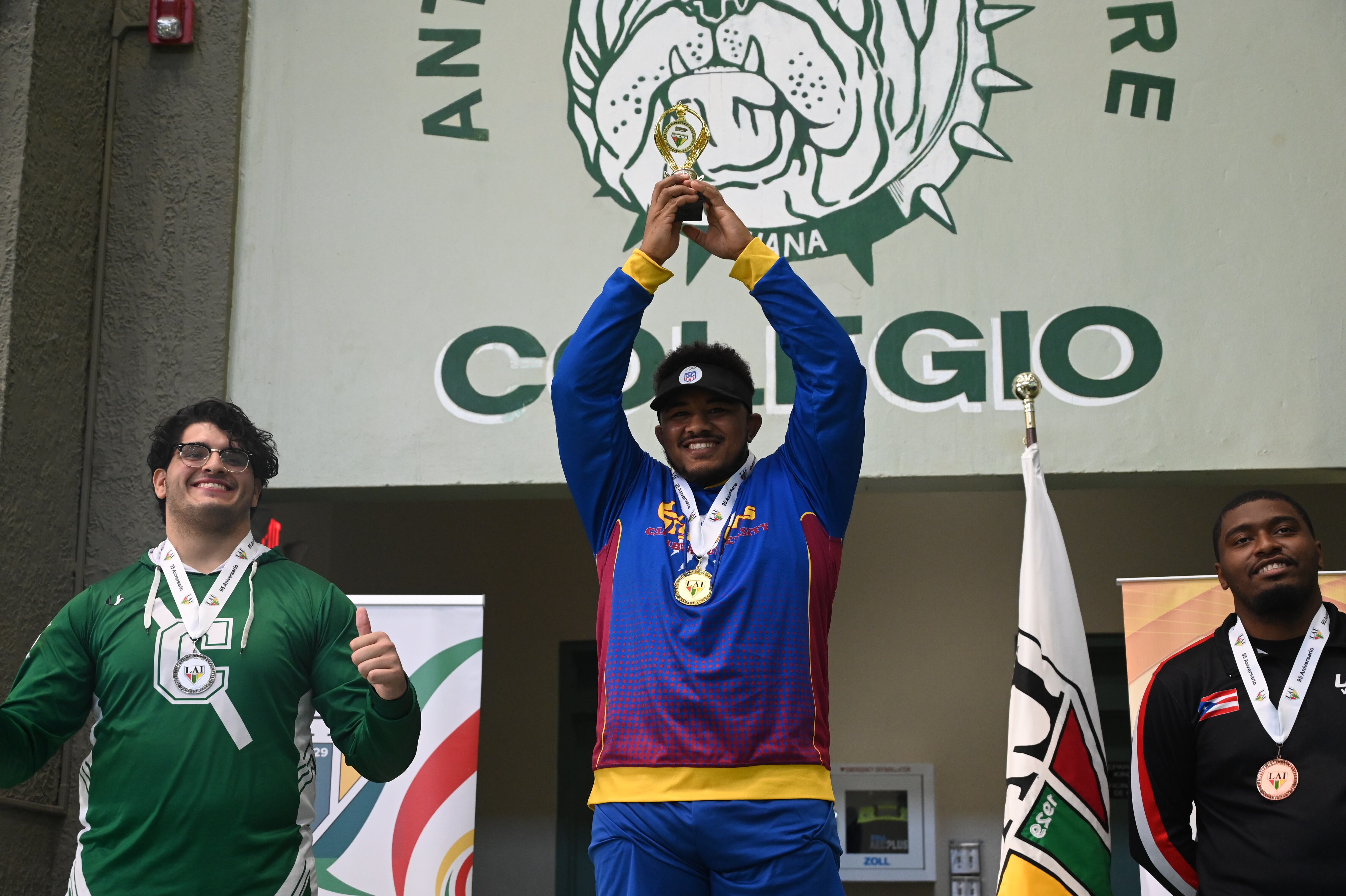 El olímpico Jonovan Smith Marrero, luchador en los Juegos Olímpicos de París 2024 por Puerto Rico, quien compitió en su primer torneo en la Liga Atlética Interuniversitaria (LAI), en la trusa de los Gryphons de la Caribbean Univeristy en la división de los 125 kilos, ganó con oro su categoría y el premio de atleta más valioso en el torneo universitario.