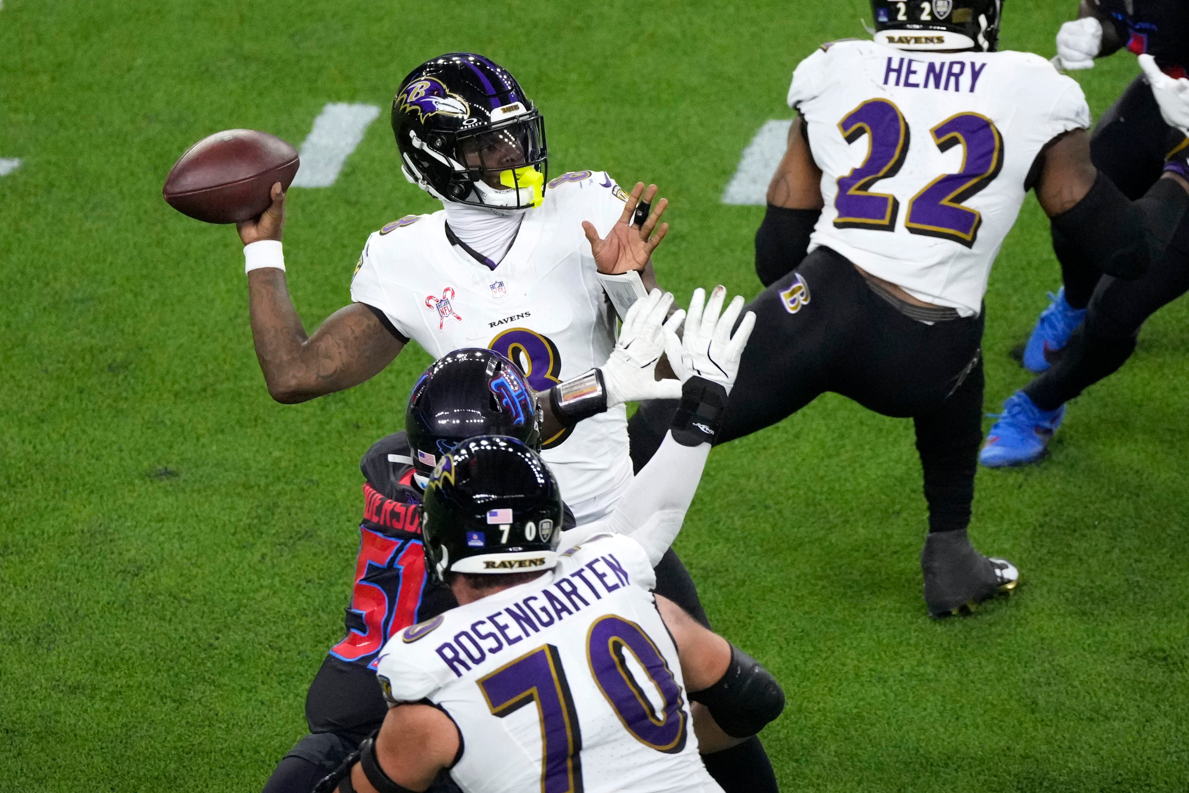Derrick Henry corrió para 147 yardas y estableció el récord de los Ravens para una campaña, con su 16º touchdown, en un acarreo de 2 yardas en el primer cuarto. Superó a Ray Rice (2011) y Mark Ingram (2019).