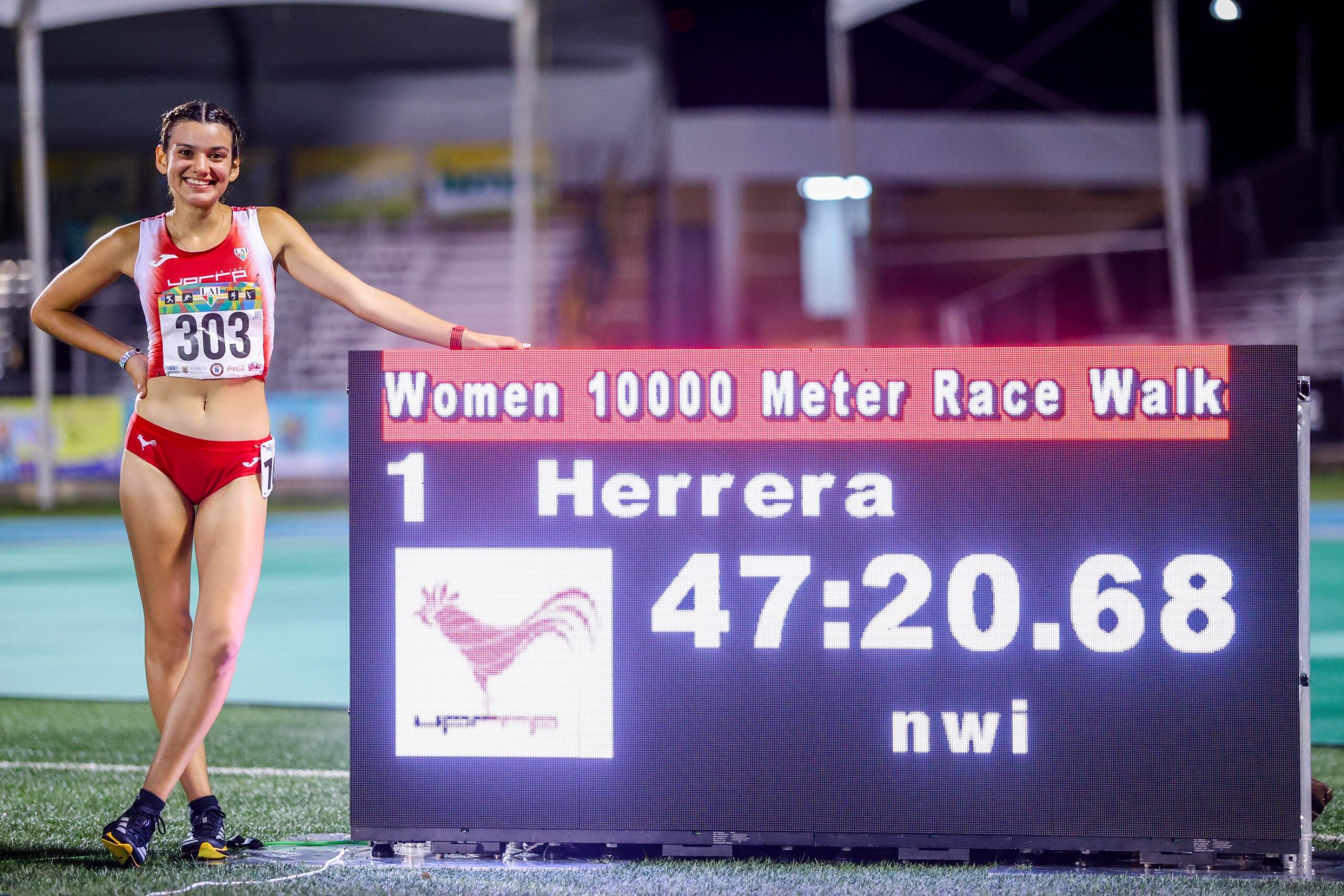 La jerezana de la Universidad de Puerto Rico (UPR) de Río Piedras, Sharon Herrera, quebró la marca de los 10,000 metros marcha, en el segundo día de las Justas de Atletismo, y penúltimo día del Festival Deportivo de la Liga Atlética Interuniversitaria (LAI).