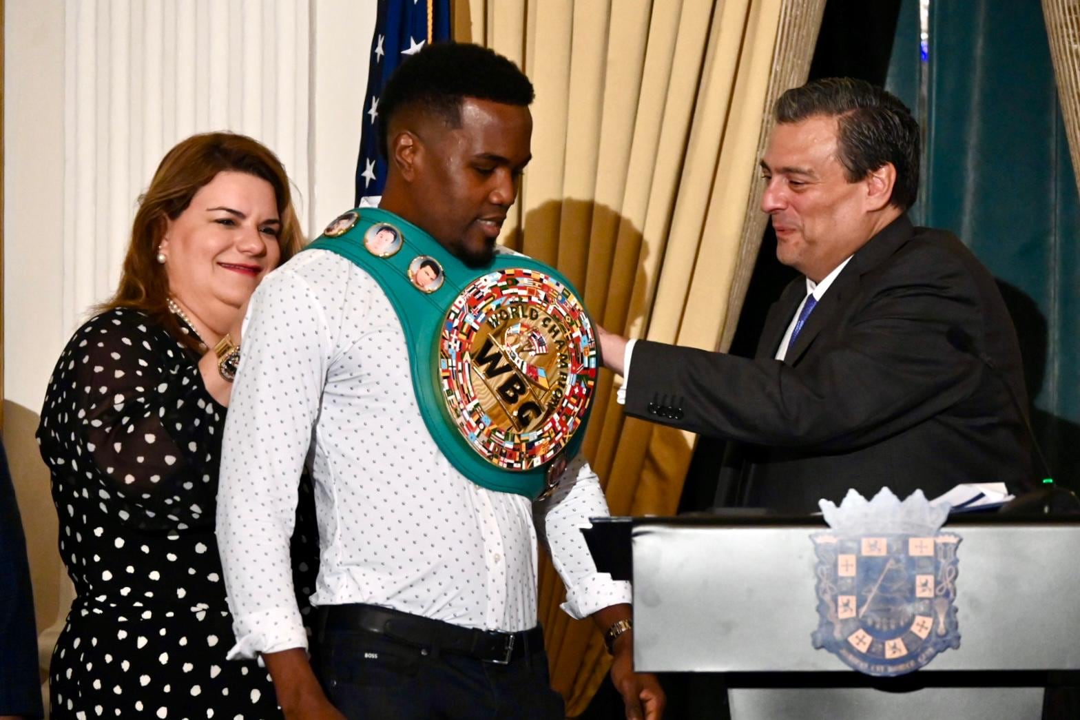 La ceremonia incluyó la entrega del cinturón por parte del presidente del CMB, Mauricio Sulaimán, y la presencia de Alberto Guerra, presidente de la Federación Centroamericana de Boxeo (Fecarbox); Edgardo López Sasso, representante del CMB en Puerto Rico; el presidente cameral Carlos “Johnny” Méndez; los senadores Héctor Joaquín Sánchez y Rafael “Rafy” Santos; el secretario del Departamento de Recreación y Deportes, Héctor Vázquez Muñiz, y el subsecretario Miguel Laureano.