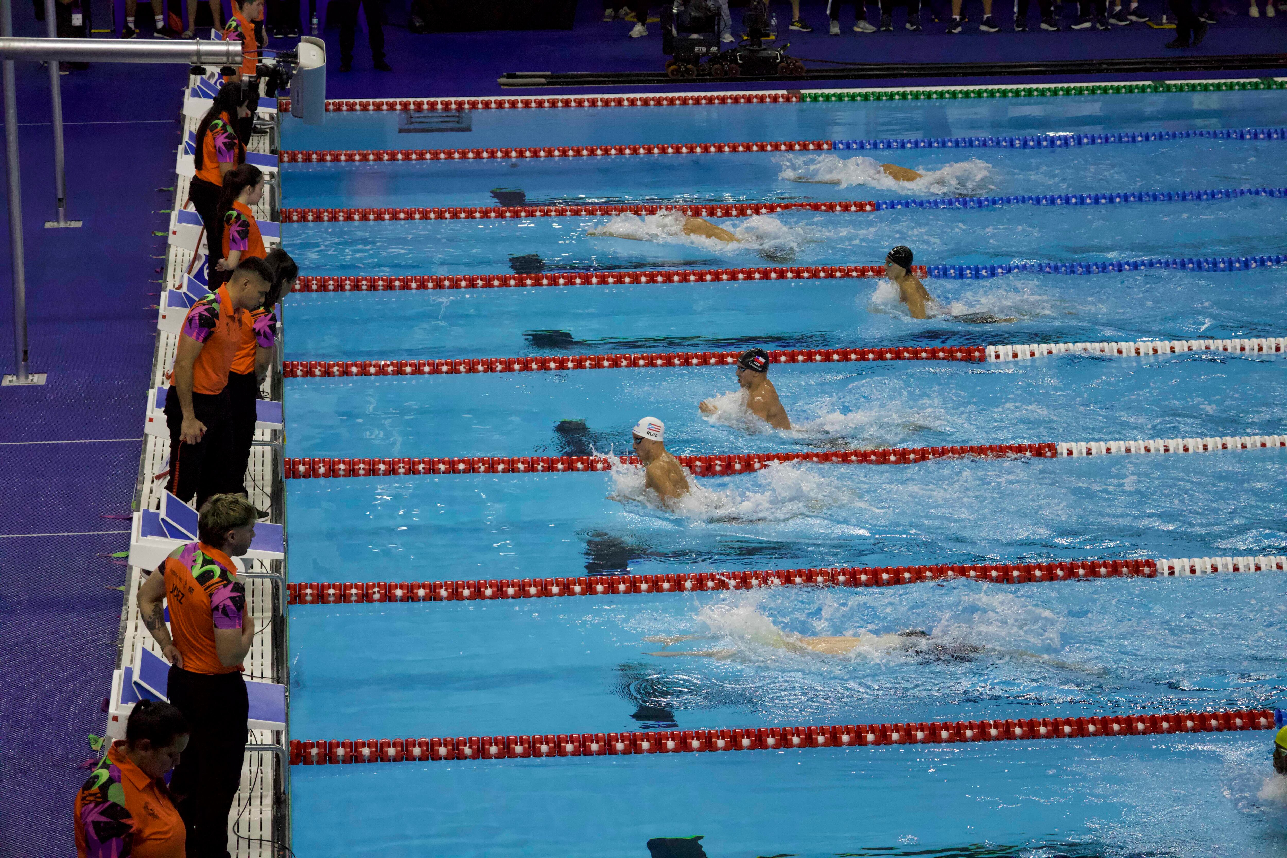 El nadador del equipo puertorriqueño, Xavier Ruiz, ganó medalla de oro este domingo tras alcanzar la victoria en el Complejo Acuático de Asunción 2025 en los 100 metros pecho.