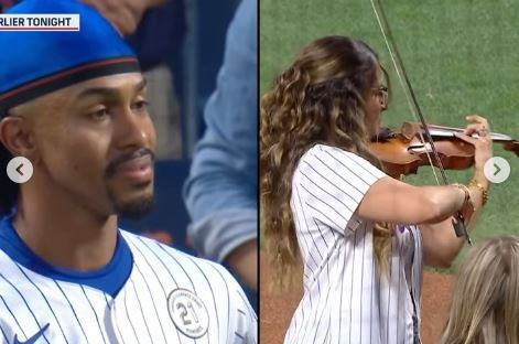 Esposa de Francisco Lindor interpreta himno nacional en el violín durante partido de los Mets