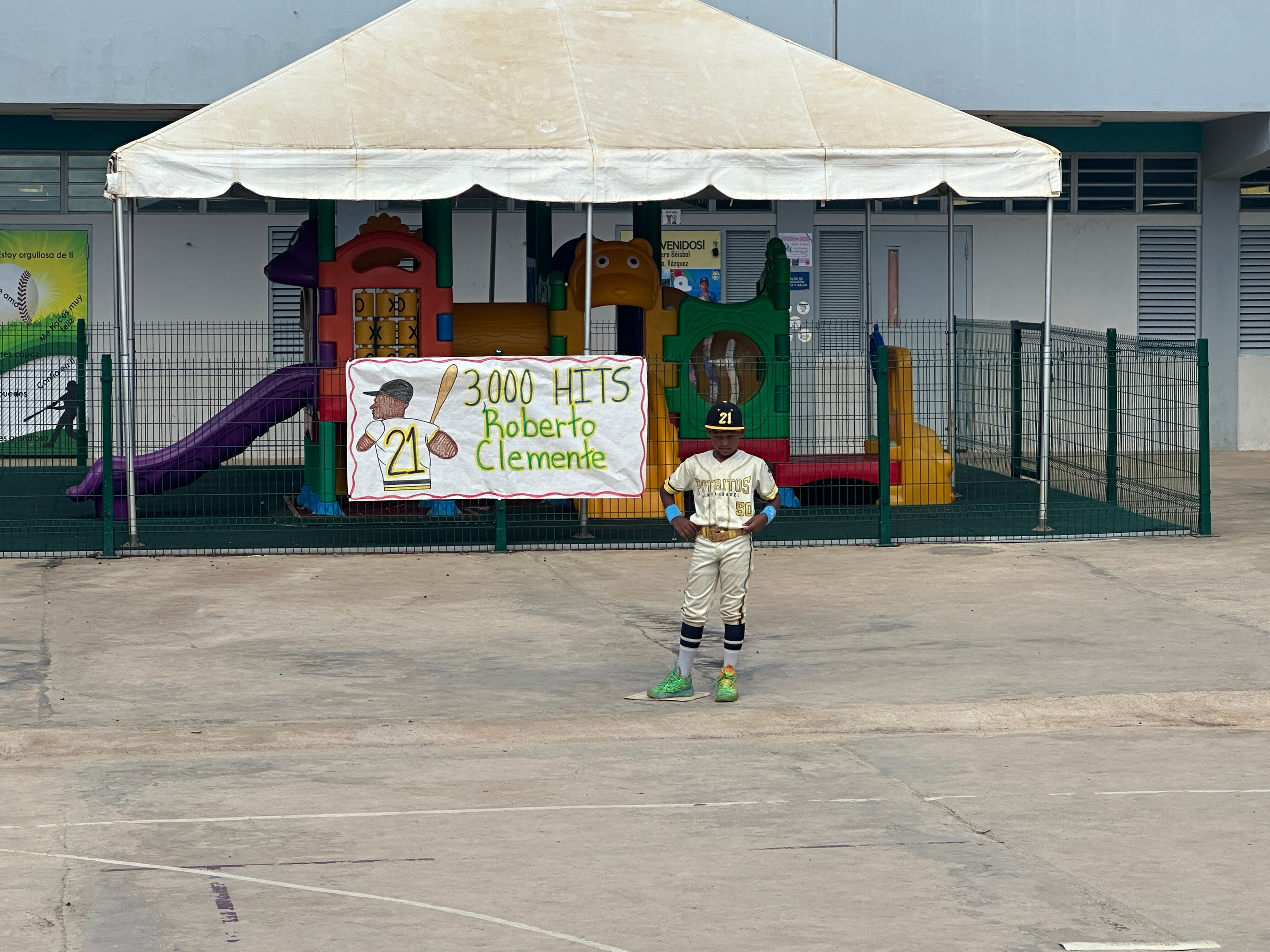 Vestido de pelotero y con bate en mano, rodeado de sus amigos y maestros, Jeremías Martínez se convirtió el pasado martes en el Roberto Clemente de su escuela El Coquí de Salinas.