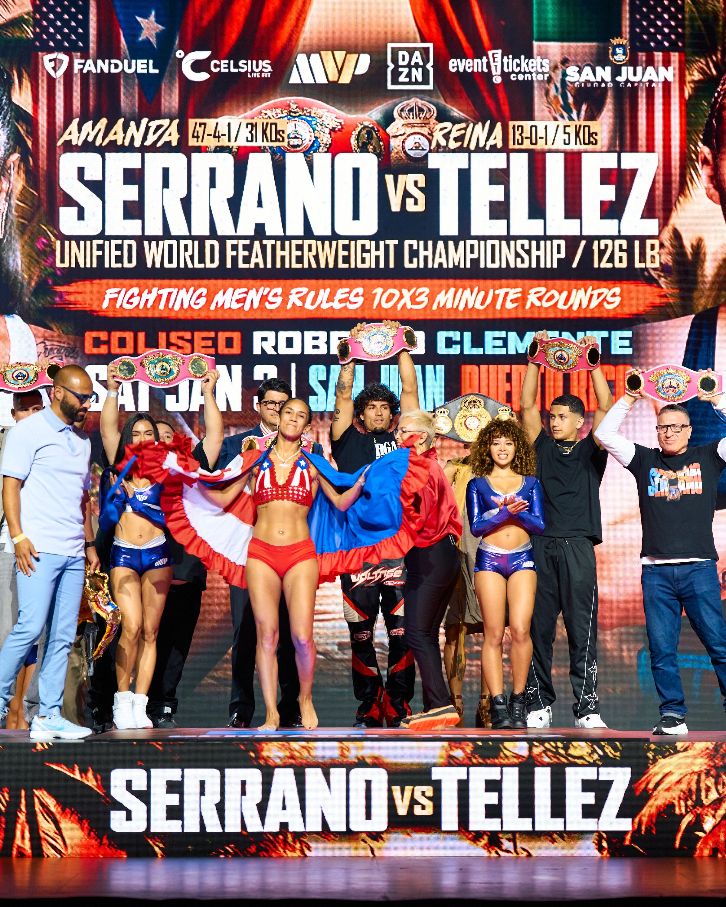 La noche de pelea en el Coliseo Roberto Clemente promete emociones. Serrano buscará reafirmar su dominio en su peso natural; Téllez subirá al ring sin oportunidad de coronarse campeona, ya que perdió el primer asalto contra la báscula. El pesaje dejó claro que, antes de que suene la campana, ya hay mucho en disputa.