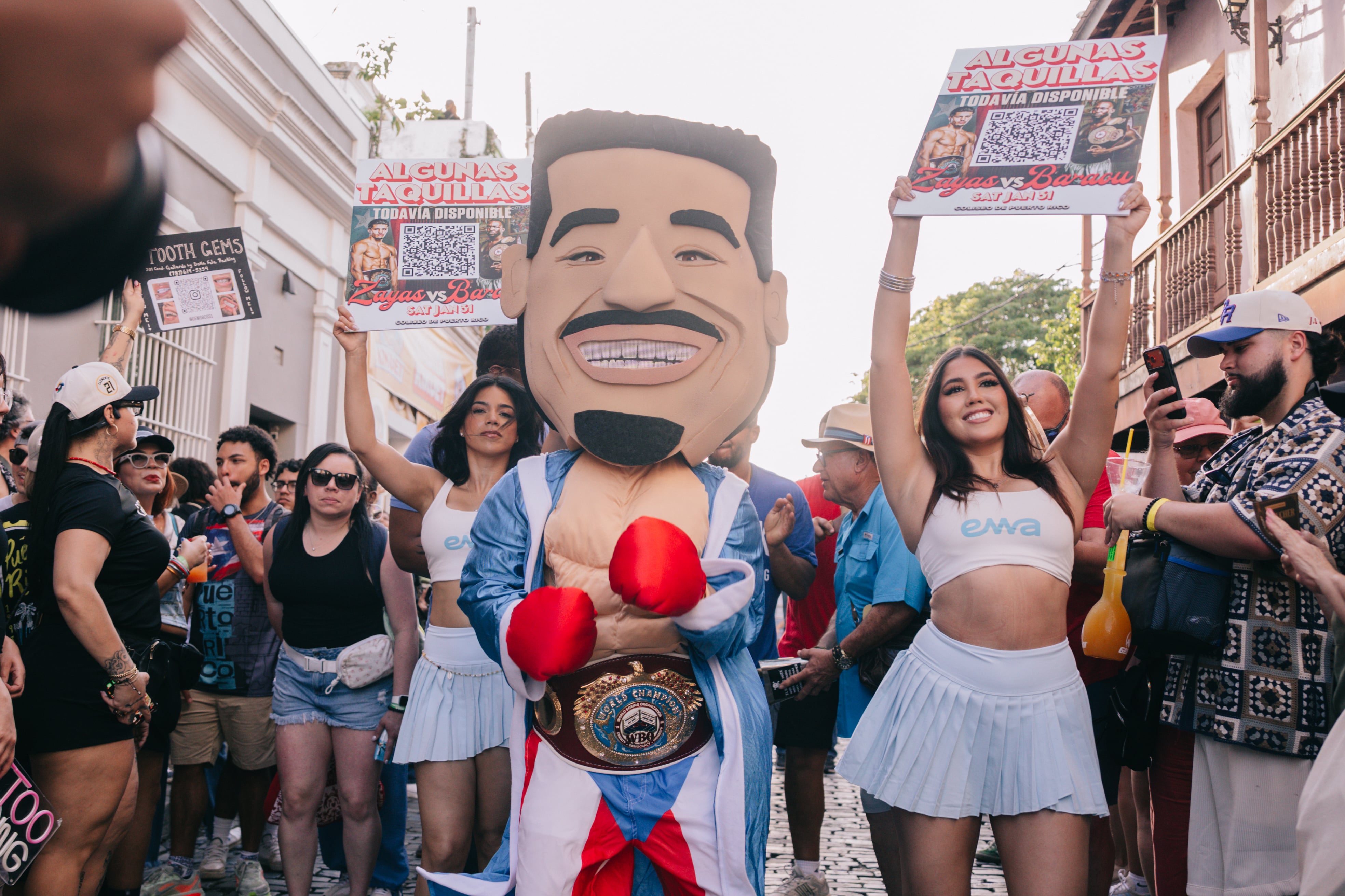En medio del ambiente festivo que caracteriza a las Fiestas de la Calle San Sebastián, una activación especial captó la atención de miles de personas en el Viejo San Juan: un cabezudo del boxeador puertorriqueño Xander Zayas que se abrió paso entre la multitud como símbolo del orgullo deportivo del país y como antesala de uno de los combates más importantes del boxeo boricua en años recientes.
