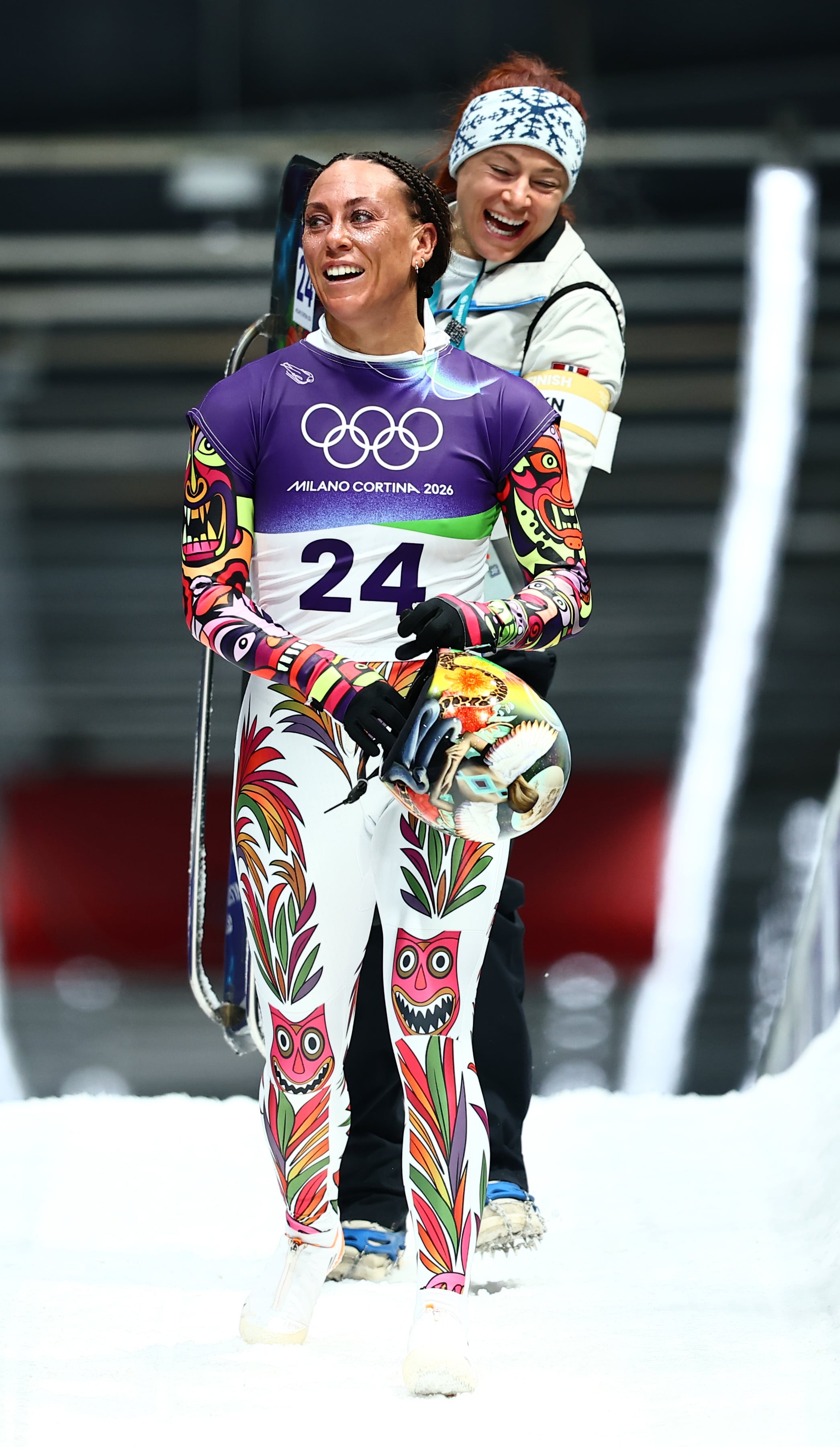 La atleta olímpica Kellie Delka completó su participación en el evento de skeleton femenino de los Juegos Olímpicos de Invierno Milano Cortina 2026, celebrado en el Cortina Sliding Centre, en Italia.