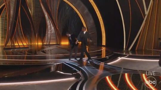 Rock hizo un comentario sobre Jada Smith, la esposa de Will Smith que provocó que el actor subiera al escenario y golpeara al comediante. Posteriormente, Smith gritó unas palabras a Rock, sin embargo la producción del evento quitó el sonido, por lo que no se pudo escuchar.