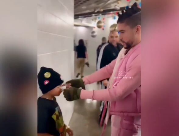 “A esa pinta le hace falta algo”, dijo Bad Bunny quien posteriormente se quitó sus gafas y se las regaló al pequeño.