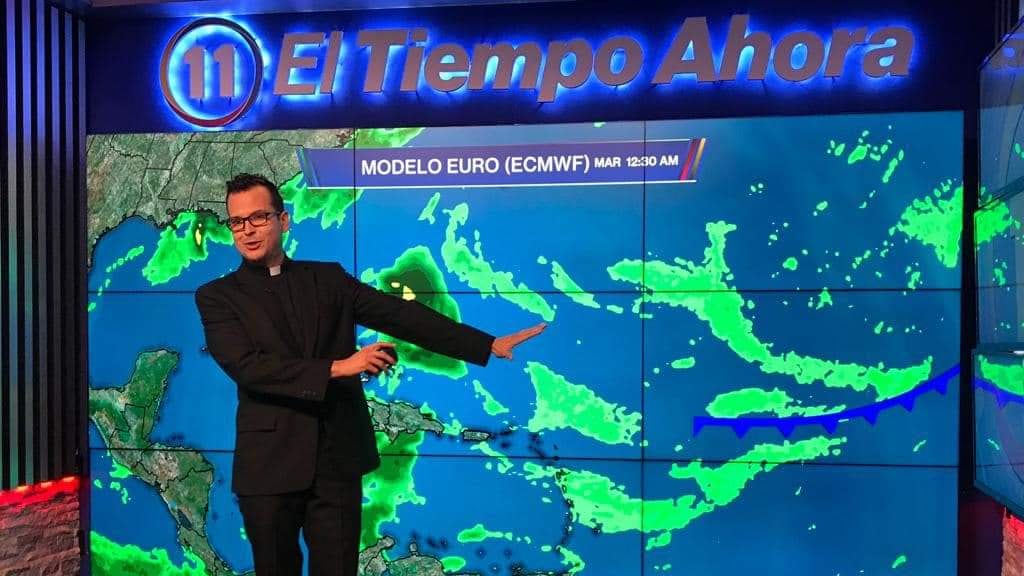 Hace 21 años decidió dejar el estudio de televisión para oficializar su conversión al sacerdocio, pero hoy el padre Orlando Lugo tuvo un reencuentro con la teleaudiencia al ser invitado por la excompañera y meteoróloga Deborah Martorell para realizar el informe del tiempo en Las Noticias de TeleOnce.