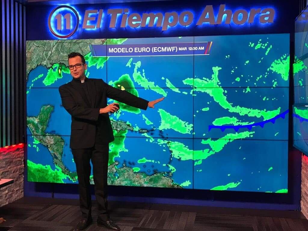 Hace 21 años decidió dejar el estudio de televisión para oficializar su conversión al sacerdocio, pero hoy el padre Orlando Lugo tuvo un reencuentro con la teleaudiencia al ser invitado por la excompañera y meteoróloga Deborah Martorell para realizar el informe del tiempo en Las Noticias de TeleOnce.