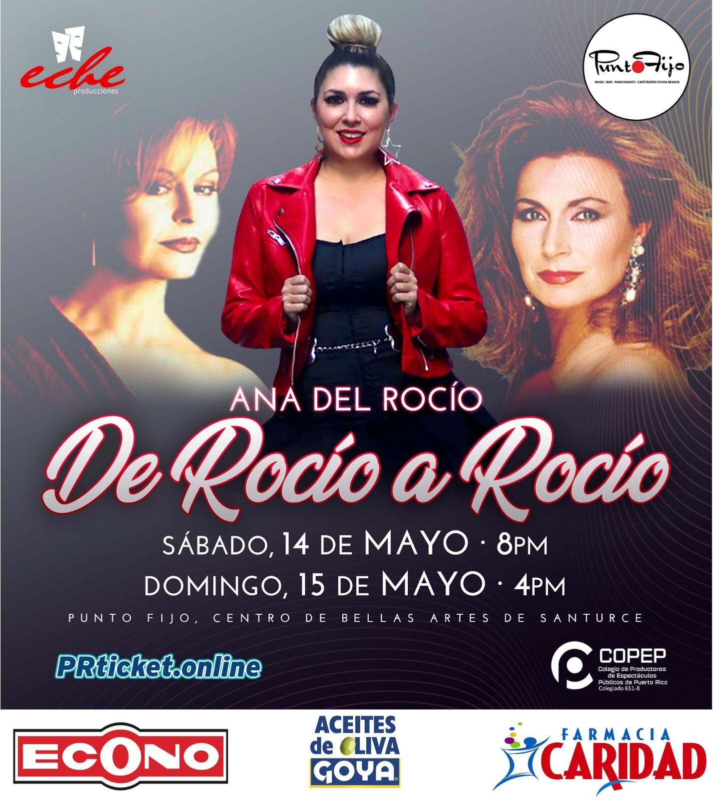 La cantante puertorriqueña Ana del Rocío regresa a los escenarios con un nuevo espectáculo titulado “De Rocío a Rocío”, donde celebra sus influencias musicales haciendo honor a las leyendas españolas Rocío Jurado y Rocío Dúrcal. El concierto se realizará el sábado, 14 de mayo y el domingo, 15 de mayo, en el café teatro Punto Fijo del Centro de Bellas Artes de Santurce.