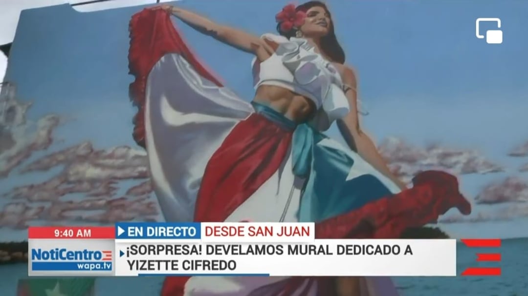 El artista Cristian Hernández se inspiró en la conductora de Noticentro al Amanecer para exponer su talento. El enorme mural fue plasmado en una de las edificaciones entre la calle San Agustín y la calle Pelayo en Puerta de Tierra. En la obra se ve a Yizette Cifredo vestida con la bandera puertorriqueña.