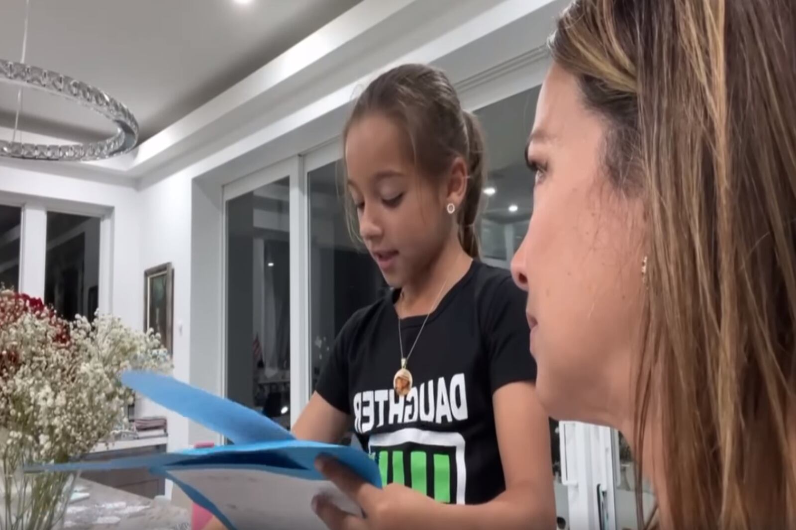 Entre los regalos está una carta que la niña escribió y leyó junto a su mamá, cómplice de esta sorpresa.