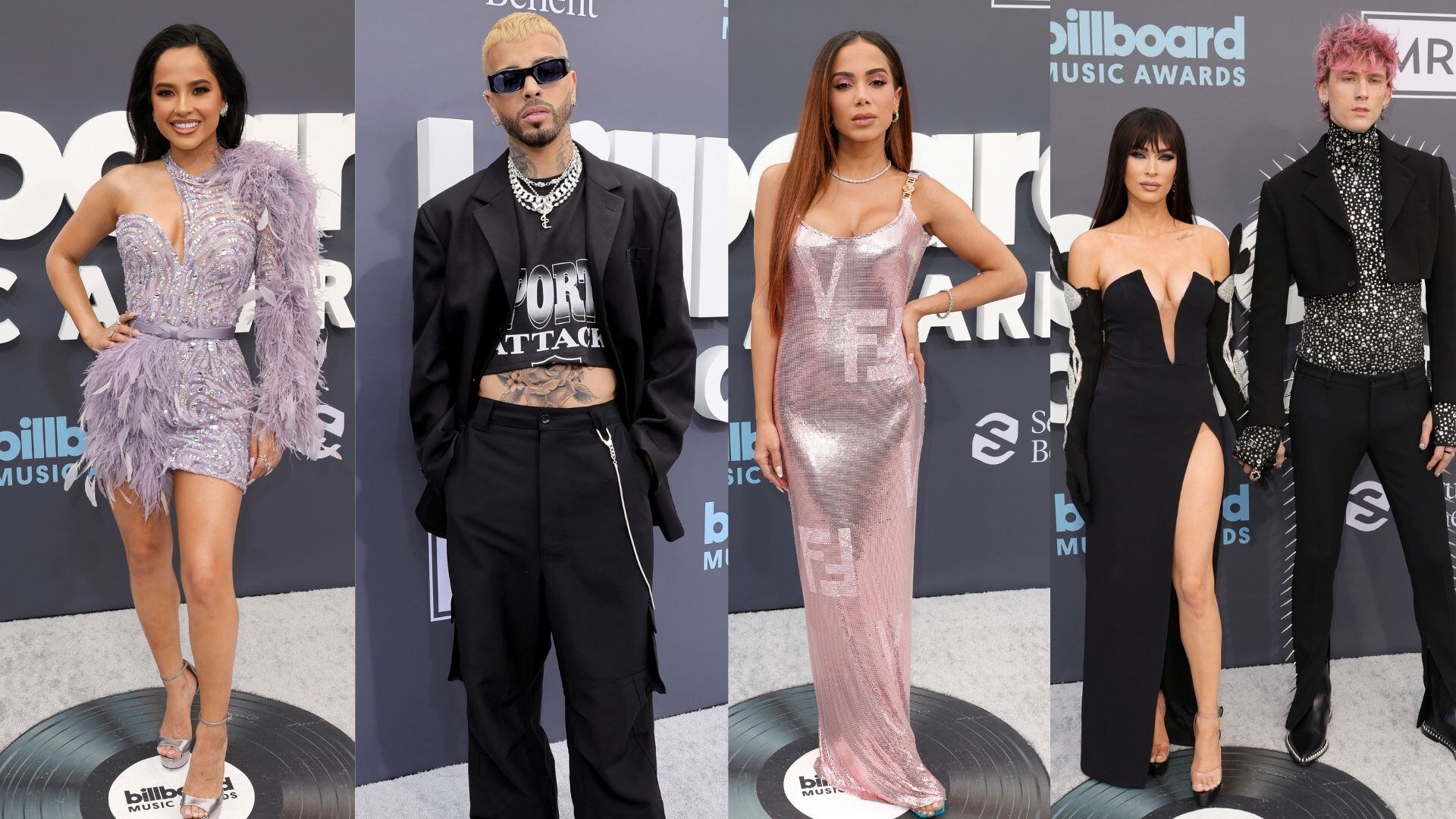 Becky G, Rauw Alejandro, Anitta, Megan Fox y Machine Gun Kelly. Así se vivió la alfombra roja o red carpet de los Billboard Music Awards 2022. / Foto: Getty Images