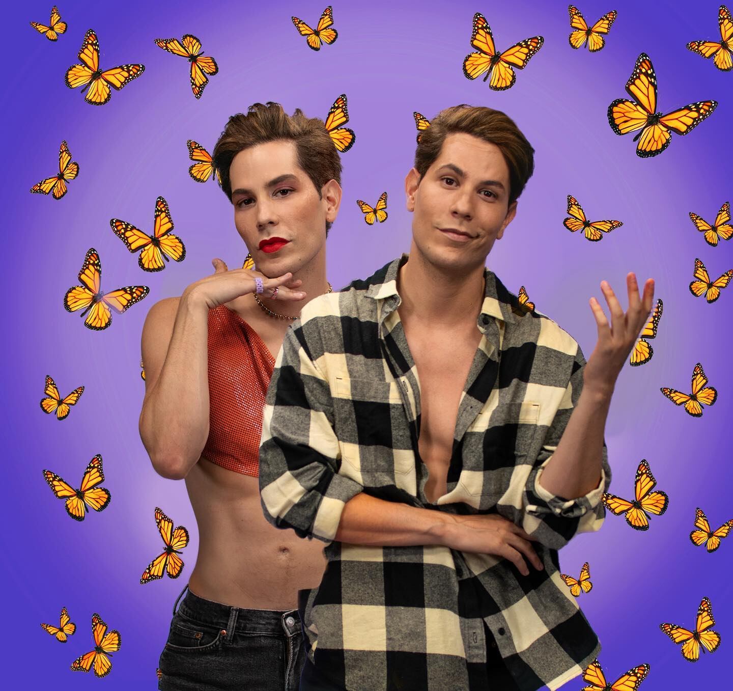 Junto con el escrito se puede apreciar una fotografía donde se ve a él en su personalidad masculina y su personalidad femenina con un fondo purpura y mariposas naranjas, agregando además un mensaje adicional en el que dice “hoy abrazo completamente mi lado femenino con orgullo. ‘Nuestros cuerpos, nuestras vidas, nuestros derechos’”.