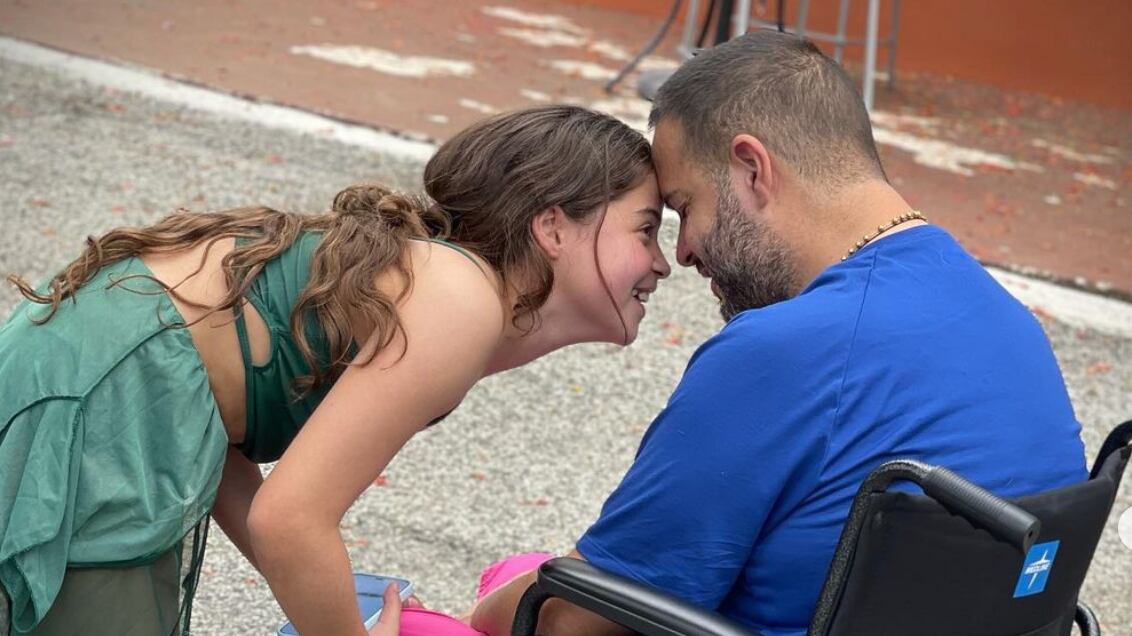 Yo solo suplicaba estos momentos. Futuro con papá, no importara las circunstancias y cuando veo el milagro se me doblan las rodillas pero esta vez de alegría para dar gracias SEÑOR!!!”, publicó Rivera en su cuenta de Instagram bajo un foto de su esposo en sillas de ruedas mientras su hija lo mira.