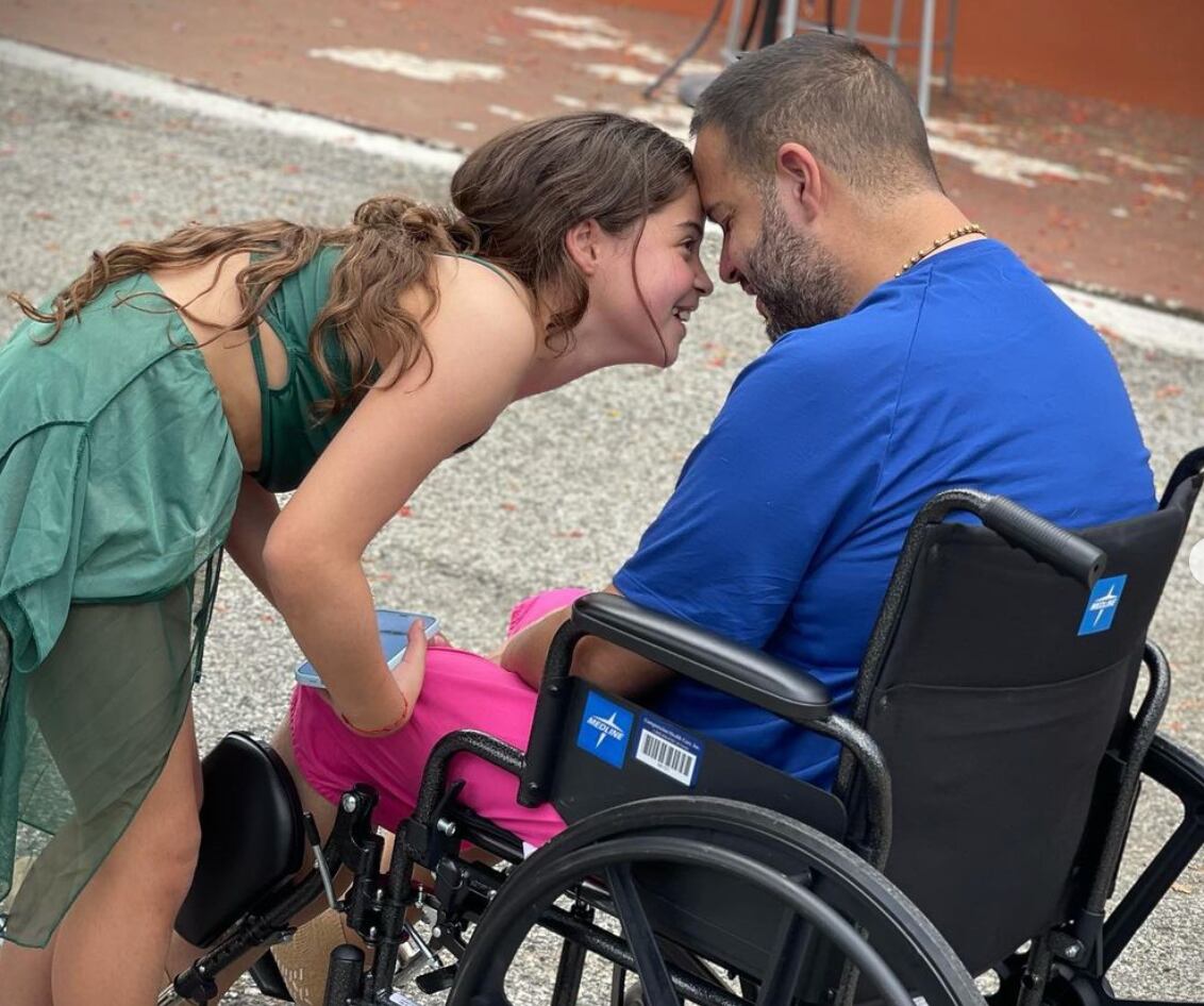 Yo solo suplicaba estos momentos. Futuro con papá, no importara las circunstancias y cuando veo el milagro se me doblan las rodillas pero esta vez de alegría para dar gracias SEÑOR!!!”, publicó Rivera en su cuenta de Instagram bajo un foto de su esposo en sillas de ruedas mientras su hija lo mira.